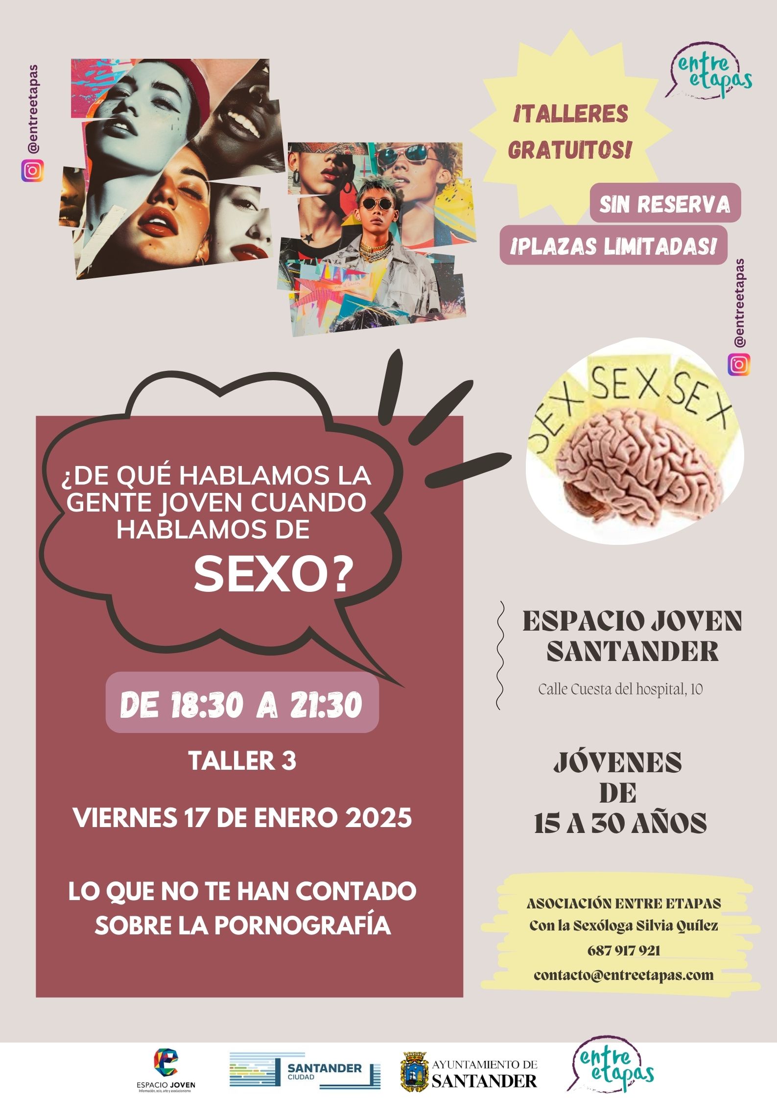 El equipo de Entre Etapas (Asociación) ha preparado cuatro talleres de Educación Afectiva y Sexual para jóvenes de entre 15 y 30 años, gratuitos, subvencionados por el Área de Juventud del Ayuntamiento de Santander.