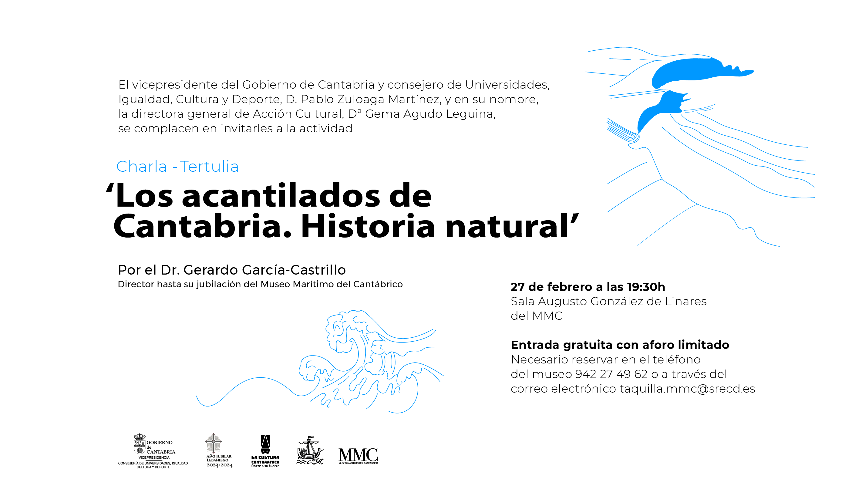 Conferencia del Dr. Gerardo García-Castrillo, titulada “Los Acantilados de Cantabria. Historia Natural” el día 27 de febrero de 2023 a las 19.30 h en la Sala Augusto González de Linares del Museo Marítimo del Cantábrico.