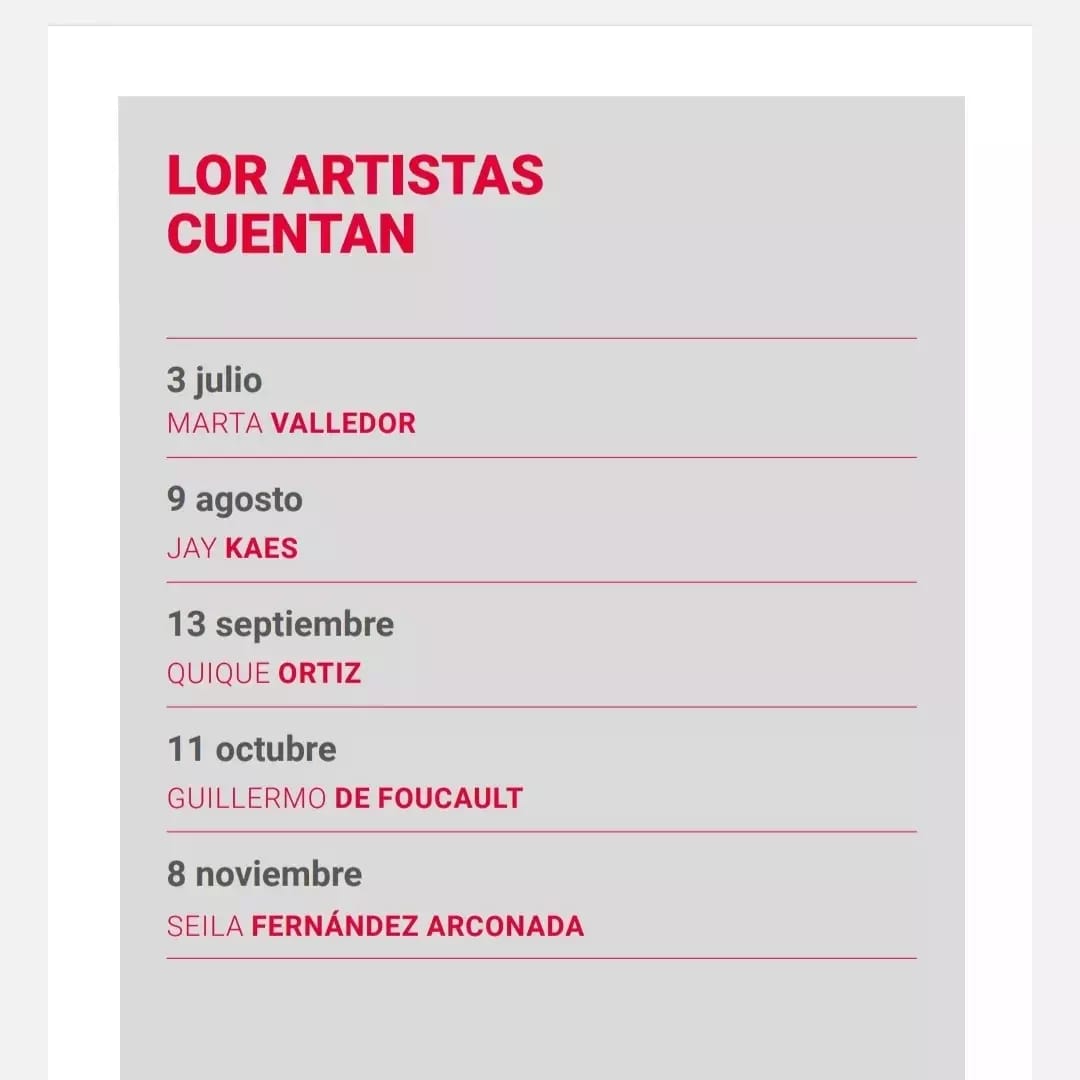 Cada cita tendrá formato de entrevista/conversación entre el artista y la directora del ciclo, acompañada de imágenes proyectadas, en algún caso incluso de obra original en la propia sala.