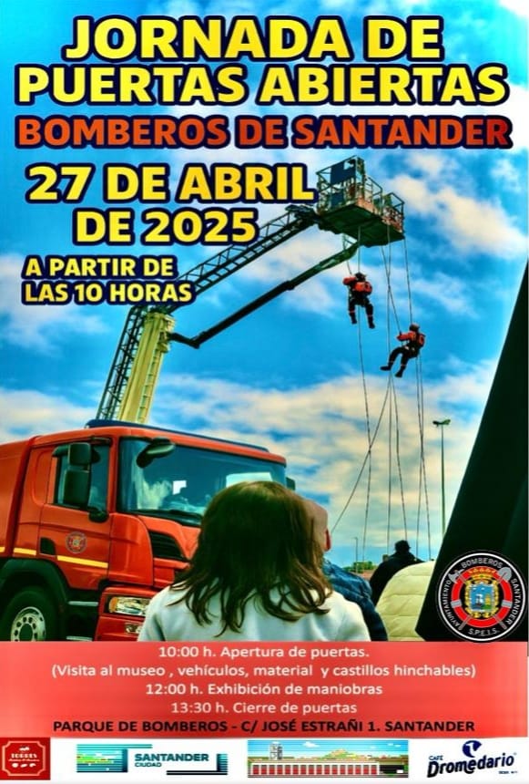 Los bomberos de Santander abrirán las puertas de su parque este domingo 27 con el objetivo de mostrar su labor diaria a través de la realización de maniobras y actividades divulgativas. La jornada se desarrollará entre las 10.00 y las 13.30 horas en las instalaciones del parque, en Ojaiz.