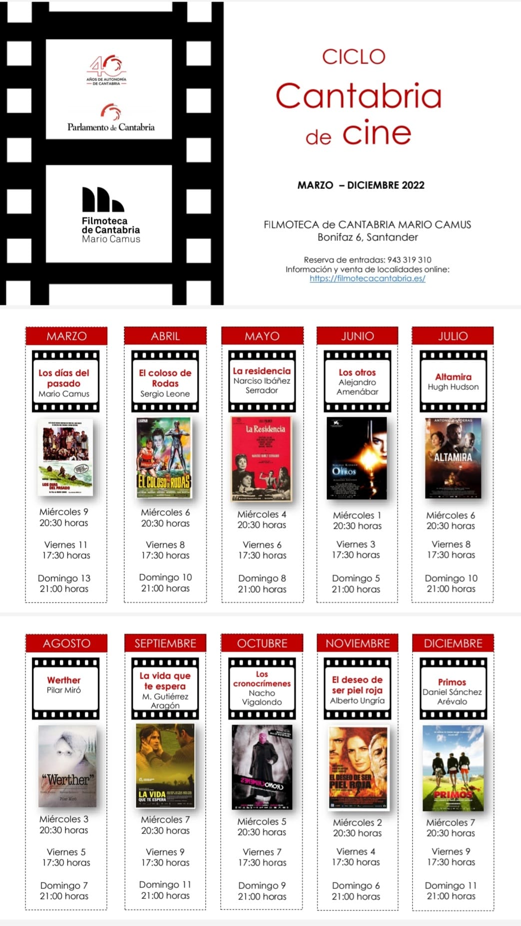 El Parlamento de Cantabria ha organizado el ciclo ‘Cantabria de cine’, dentro de los actos de conmemoración del 40 aniversario del Estatuto de Autonomía, para rescatar y exhibir diez películas rodadas en la comunidad y, en su mayoría, dirigidas por cineastas cántabros.