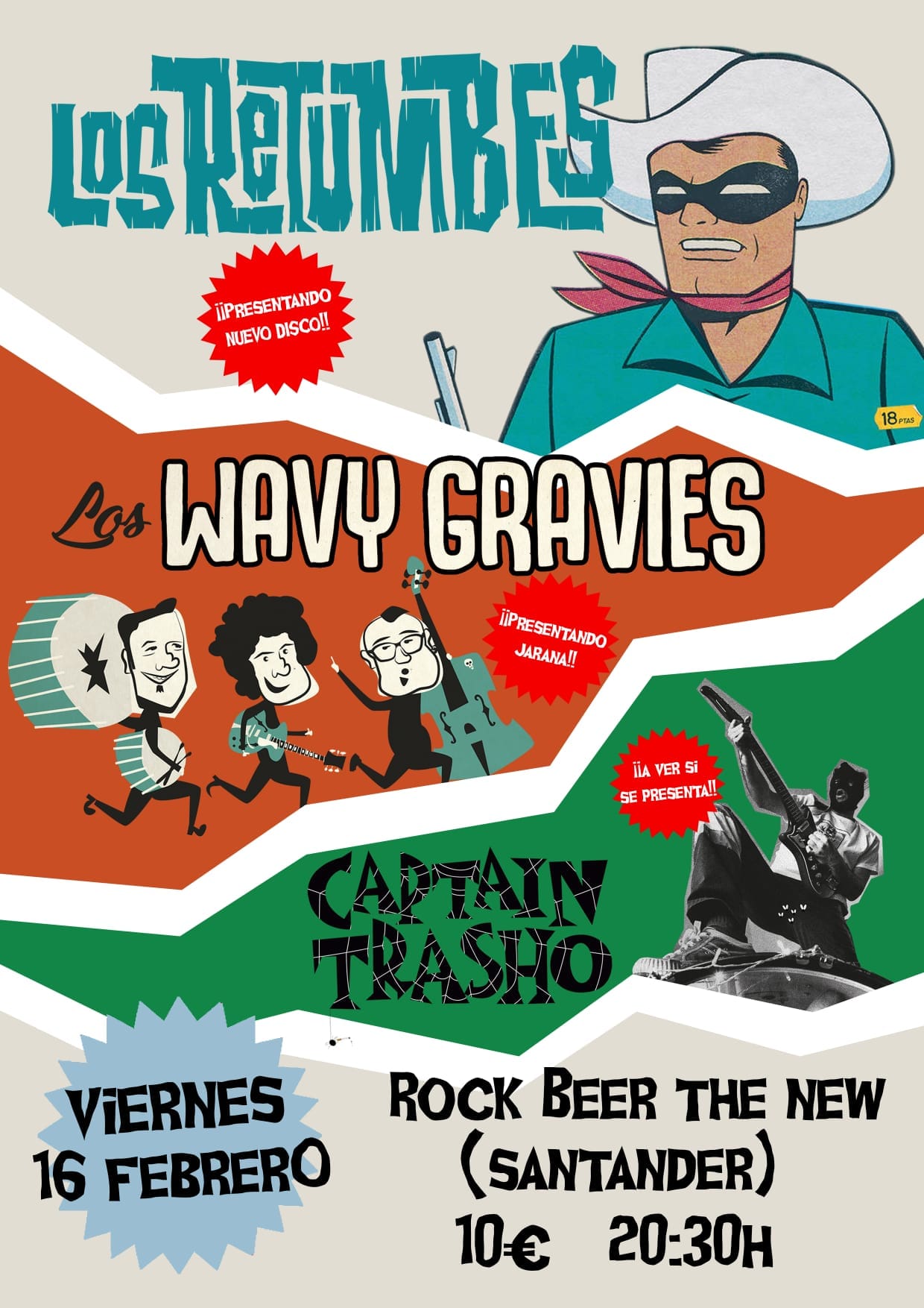 Los Retumbes, Los Wavy Gravies y Captain Trasho en concierto en la sala Rock Beer the New el viernes 16 de febrero a partir de las 20:30h.