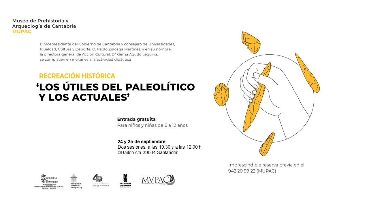 El Museo de Prehistoria y Arqueología de Cantabria (MUPAC) organiza la actividad didáctica “Los útiles del Paleolítico y los actuales”. Dirigido a niñas y niños de 6 a 12 años, el taller tendrá lugar los días 24 y 25 de septiembre en dos sesiones, a las 10:30 y a las 12:00 h.