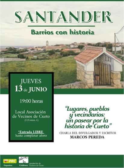 El local de la Asociación de Vecinos de Cueto acoge la charla del divulgador y escritor Marcos Pereda, que hablará acerca de "Lugares, pueblos y vecindarios: un pasear por la historia de Cueto".