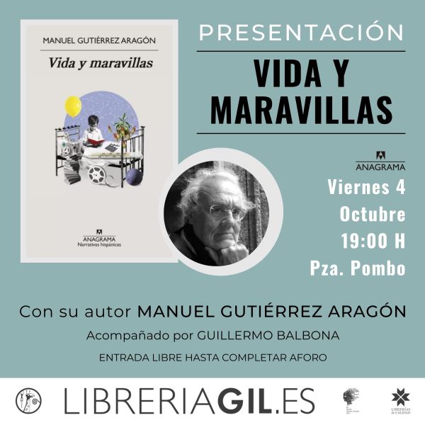 El viernes 4 de octubre, a las 19:00 h.en la Librería Gil de la Plaza de Pombo tendrá lugar la presentación de “Vida y maravillas”, de Manuel Gutiérrez Aragón (Editorial Anagrama). El escritor y cineasta estará acompañado por Guillermo Balbona.