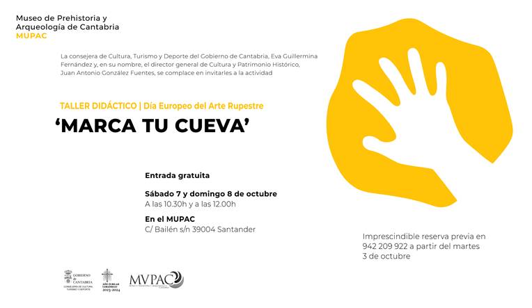 Coincidiendo con el Día Europeo del Arte Rupestre, el Museo de Prehistoria y Arqueología (MUPAC) acoge la actividad infantil “Marca tu cueva” los días 7 y 8 de octubre. Los participantes emplearán las técnicas del arte paleolítico con útiles líticos para hacer los grabados y preparar los pigmentos. También harán pinceles y útiles para tamponado.