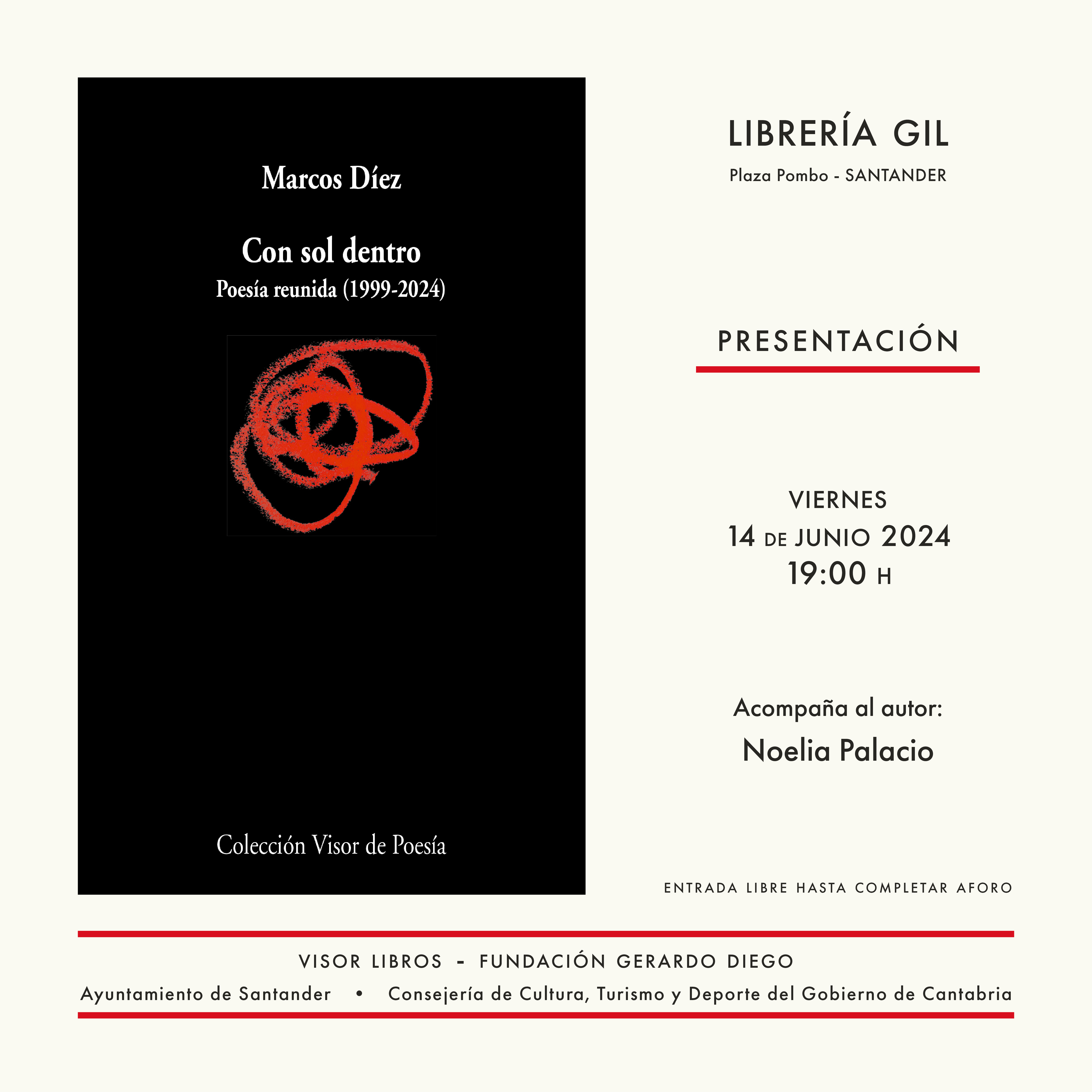 Marcos Díez presenta Con sol dentro (Poesía reunida, 1999-2024), un proyecto editorial que ha acogido la Fundación Gerardo Diego, en colaboración con la editorial Visor, dentro de su línea de trabajo de colaboración con editoriales de ámbito nacional para difundir la obra poética de autores de Cantabria.