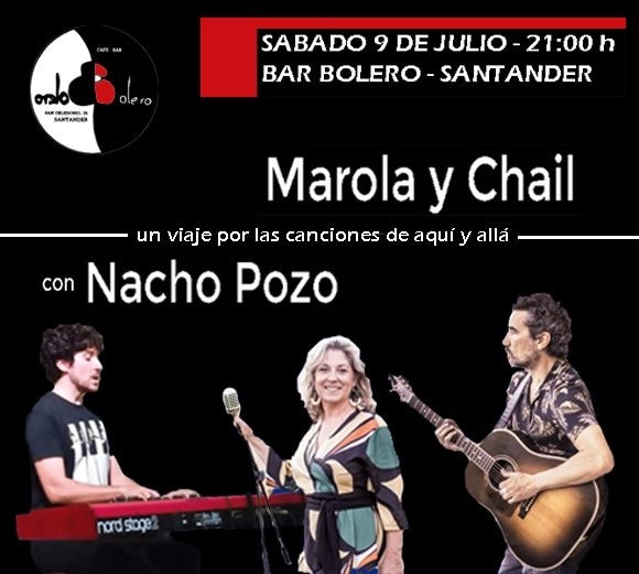 Un viaje por las canciones de aquí y de allá con Marola y Chail, acompañados por Nacho Pozo. En el Bar Bolero, el sábado 9 de julio a las 21:00 h.