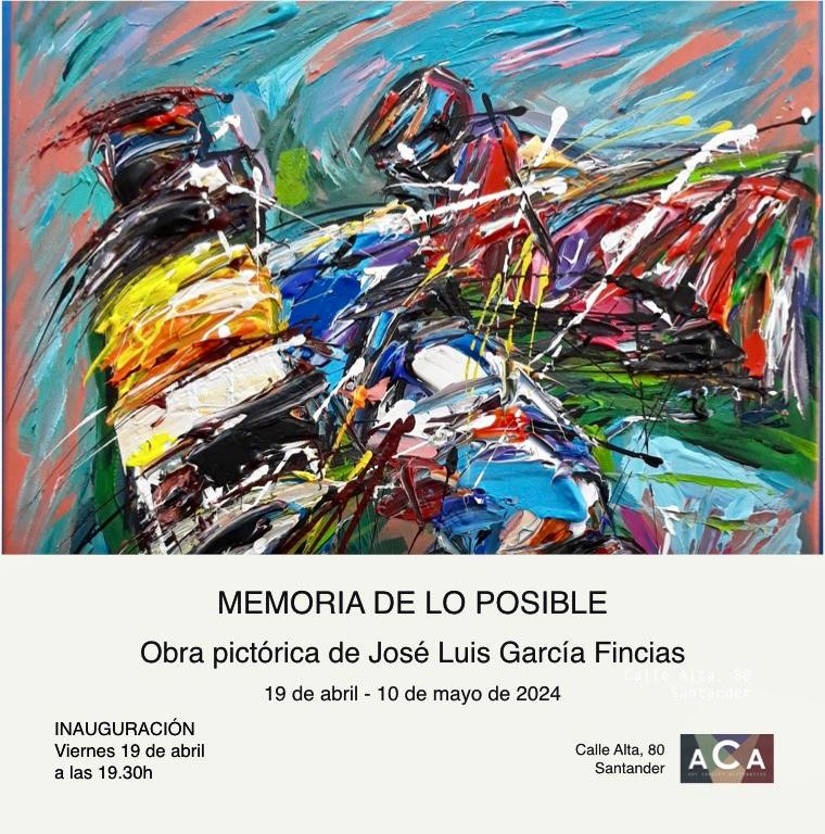ACA_Santander presenta “Memoria de lo posible”, primera exposición individual en Santander del artista madrileño José Luis García Fincias. En un mundo tecnológico y saturado de imágenes, el trabajo llamativo, colorista, enérgico y pasional de Fincias busca conectar con el público mediante imágenes directas y de gran impacto visual. Su pintura procede del mundo de la ilustración y la publicidad, con influencias del expresionismo, el Pop Art, , el Street Art, o el Hip-Hop. Son obras llenas de miradas y gestos singulares, en las que el uso del color, las texturas, los ritmos internos, los contrastes y la pincelada salvaje y casi agresiva, no buscan la similitud o la representación fiel, “realista”, del entorno, sino la identidad.