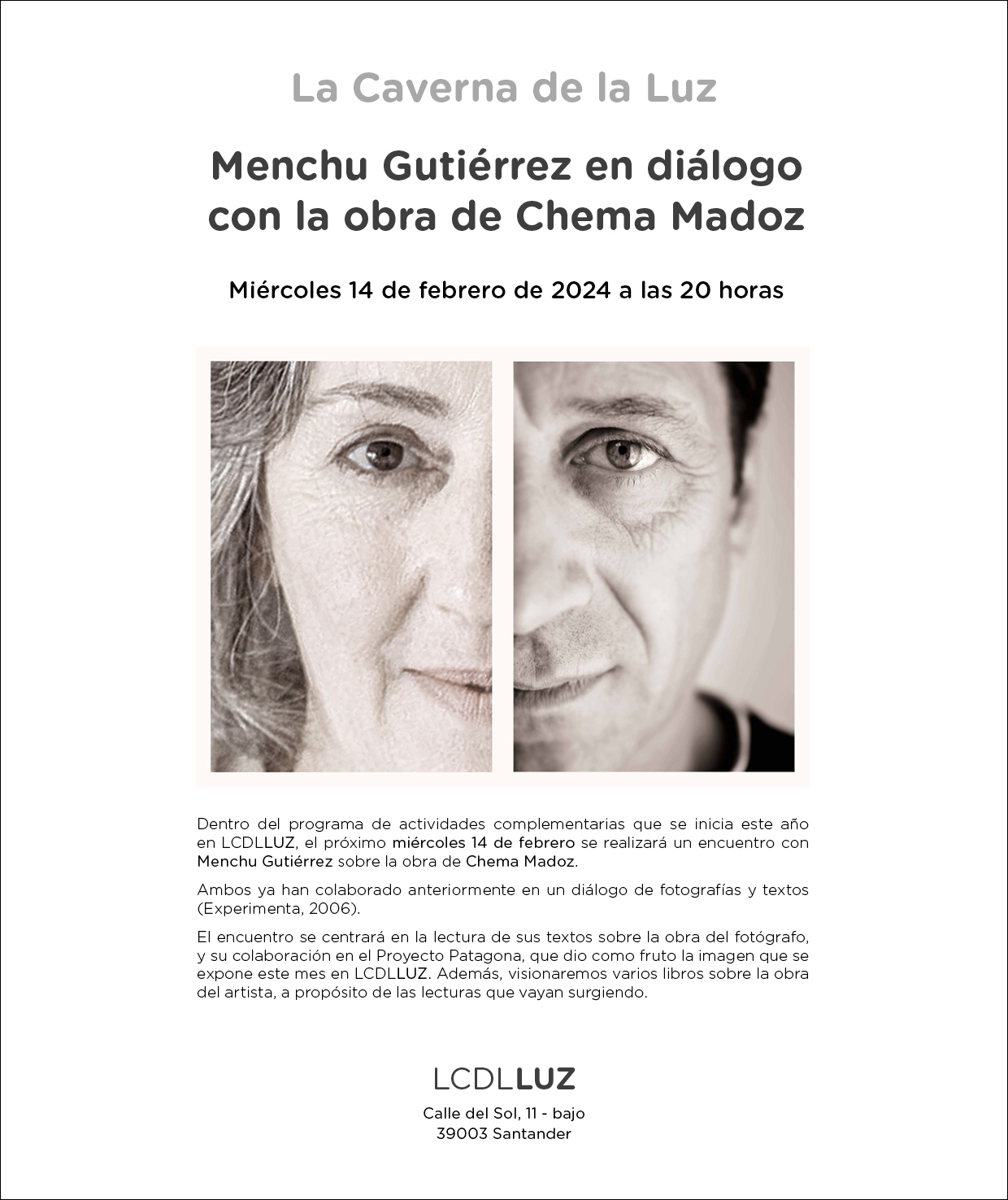 Dentro de actividades complementarias que se inicia este año en LCDLLUZ, el miércoles 14 de febrero tendrá lugar un encuentro con Menchu Gutiérrez sobre la obra de Chema Madoz.
