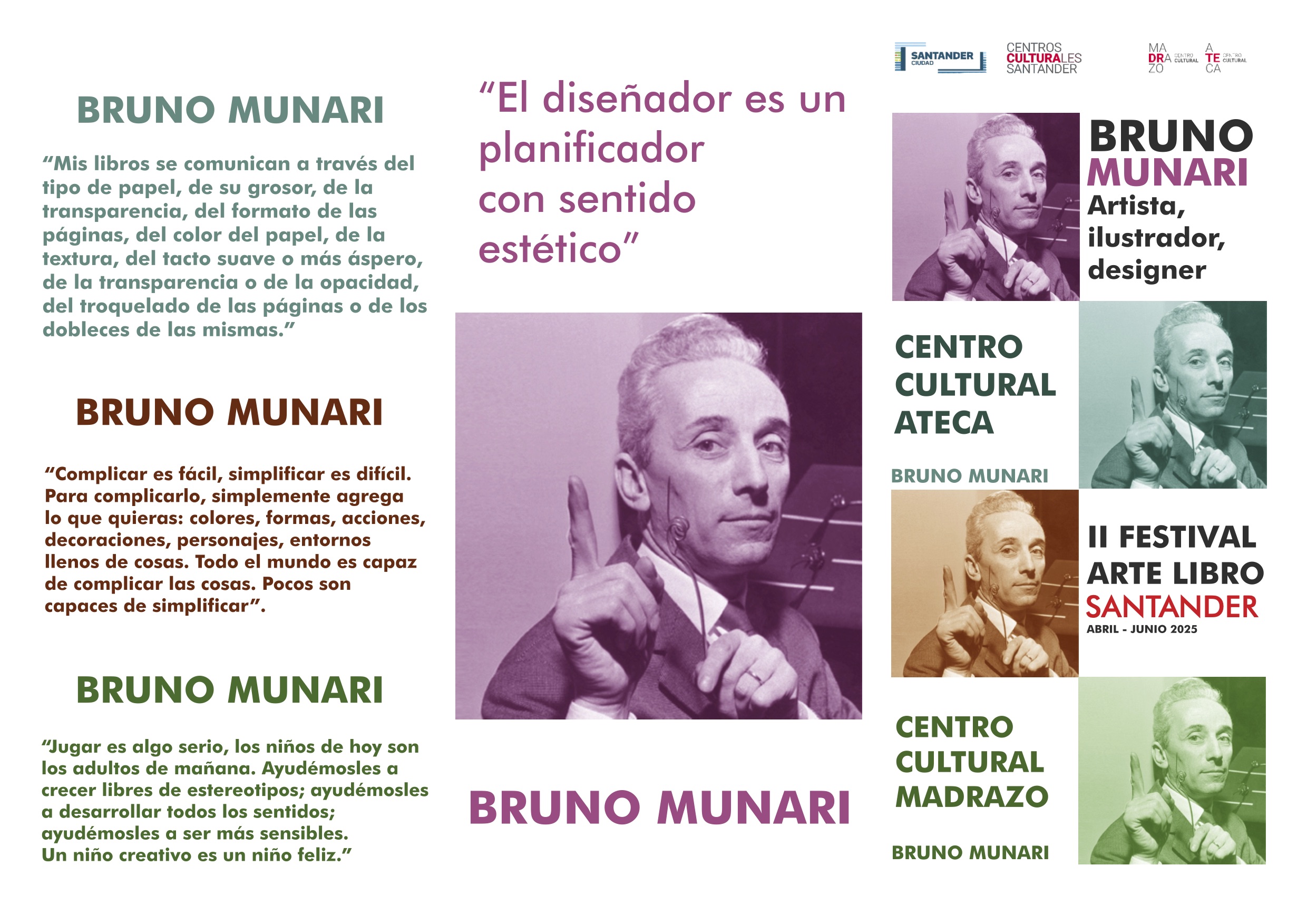 El II Festival Arte Libro de Santander tendrá lugar en el centro cultural Fernando Ateca con una programación que tendrá como protagonista al ilustrador y diseñador Bruno Munari, artífice de una verdadera revolución en el ámbito del diseño editorial, en la producción de libros para la infancia y la creación de libros de artista.