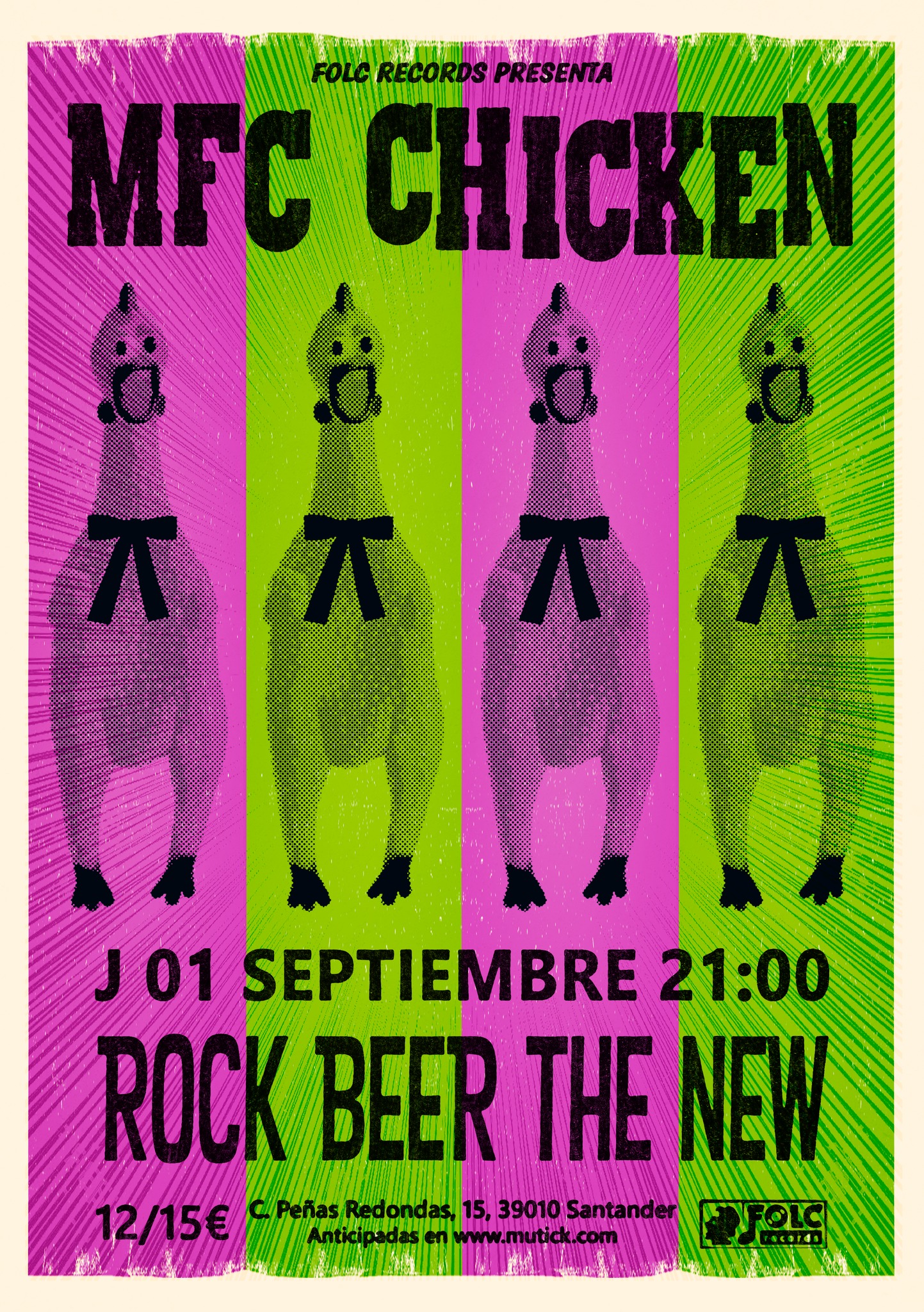 Formados en 2010 sobre una sucia tienda de pollo frito en Holloway Road, MFC Chicken tocan canciones de rock and roll crudo, impulsadas por el saxo, que tratan sobre comida rápida y corazones rotos.