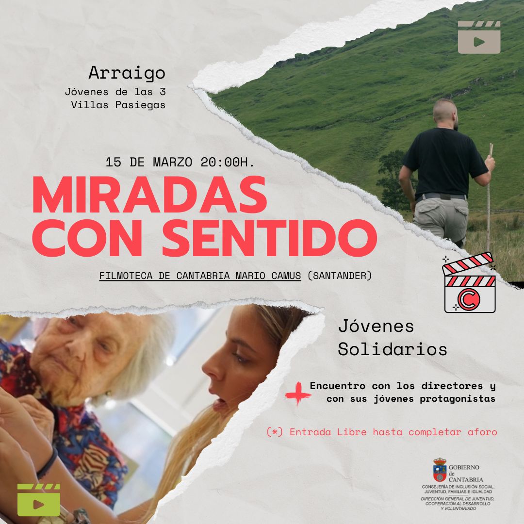 La Consejería de Inclusión Social, Juventud, Familias e Igualdad presenta el sábado 15 de marzo en la Filmoteca de Cantabria Mario Camus el proyecto audiovisual 'Miradas con sentido', para dar a conocer la realidad de la juventud de la comunidad autónoma a través de dos documentales, 'Arraigo' y 'Jóvenes solidarios'.