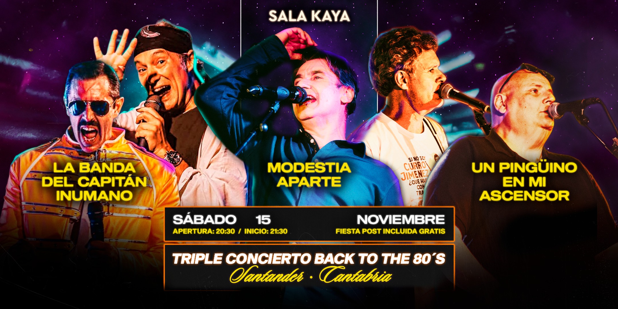 Sus canciones no solo marcaron una época en los 80. Marcaron un antes y un después en tí. Tres leyendas en un mismo escenario: Modestia Aparte, Un Pingüino en mi Ascensor y La Banda del Capitán Inhumano.