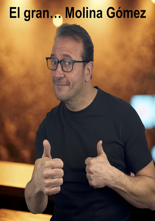 Molina Gómez es un cómico con más de 10 años de trayectoria en el mundo de la comedia. Ha recorrido innumerables municipios, locales y teatros, entre ellos: La Chocita del Loro, Teatro José María Rodero, Teatro Municipal de Alcalá de Henares Teatro de Chinchón. También ha participado en diferentes programas de radio y podcast, compartiendo su humor y visión única de la vida cotidiana. Molina Gómez conecta con el público desde la verdad, la energía y un humor tan expresivo que se vive más allá de las palabras.