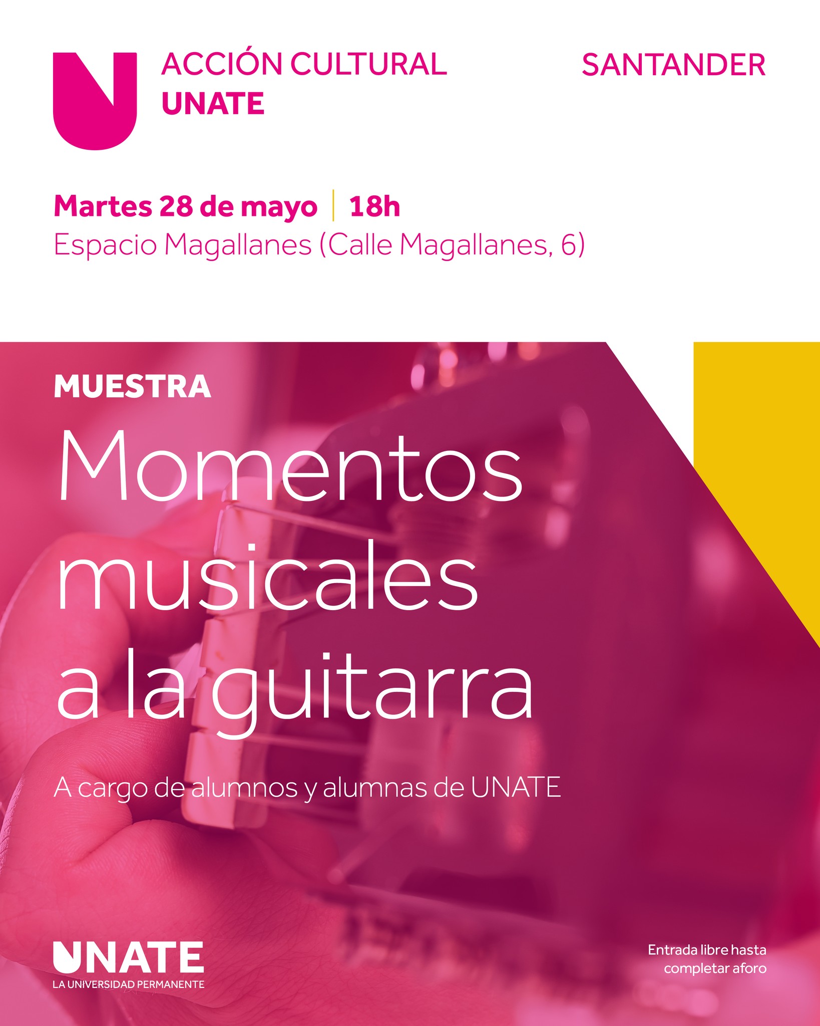 El grupo de guitarra de UNATE Santander, bajo la dirección de Pablo Alvear, ofrece un concierto incluido dentro de la programación especial de cierre de la temporada cultural de Espacio Magallanes, correspondiente al curso 2023-2024