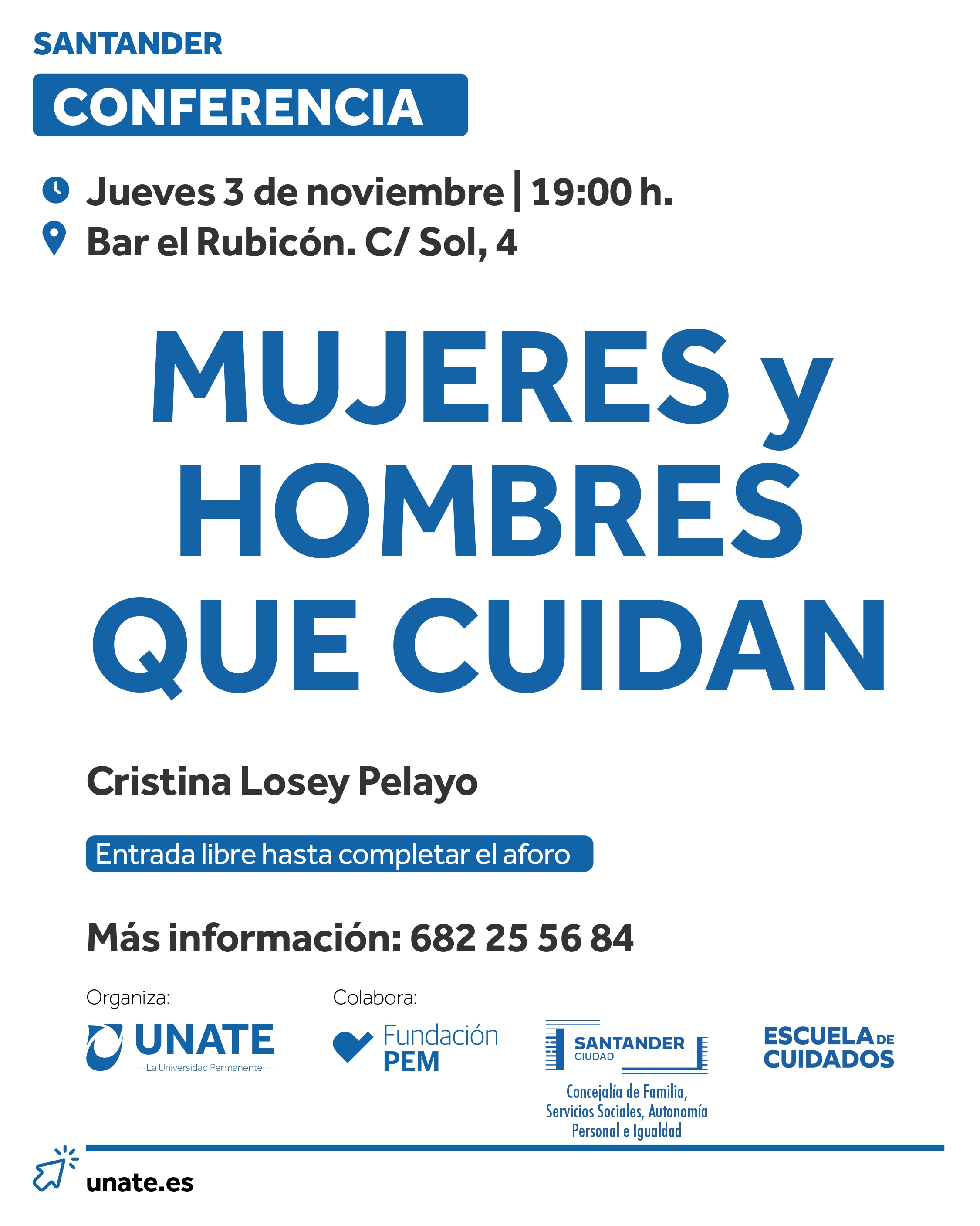 Organiza UNATE, La Universidad Permanente con la colaboración de la Fundación PEM – concejalía de Familia, Servicios Sociales, Autonomía Personal e Igualdad del Ayuntamiento de Santander – Escuela de Cuidados.