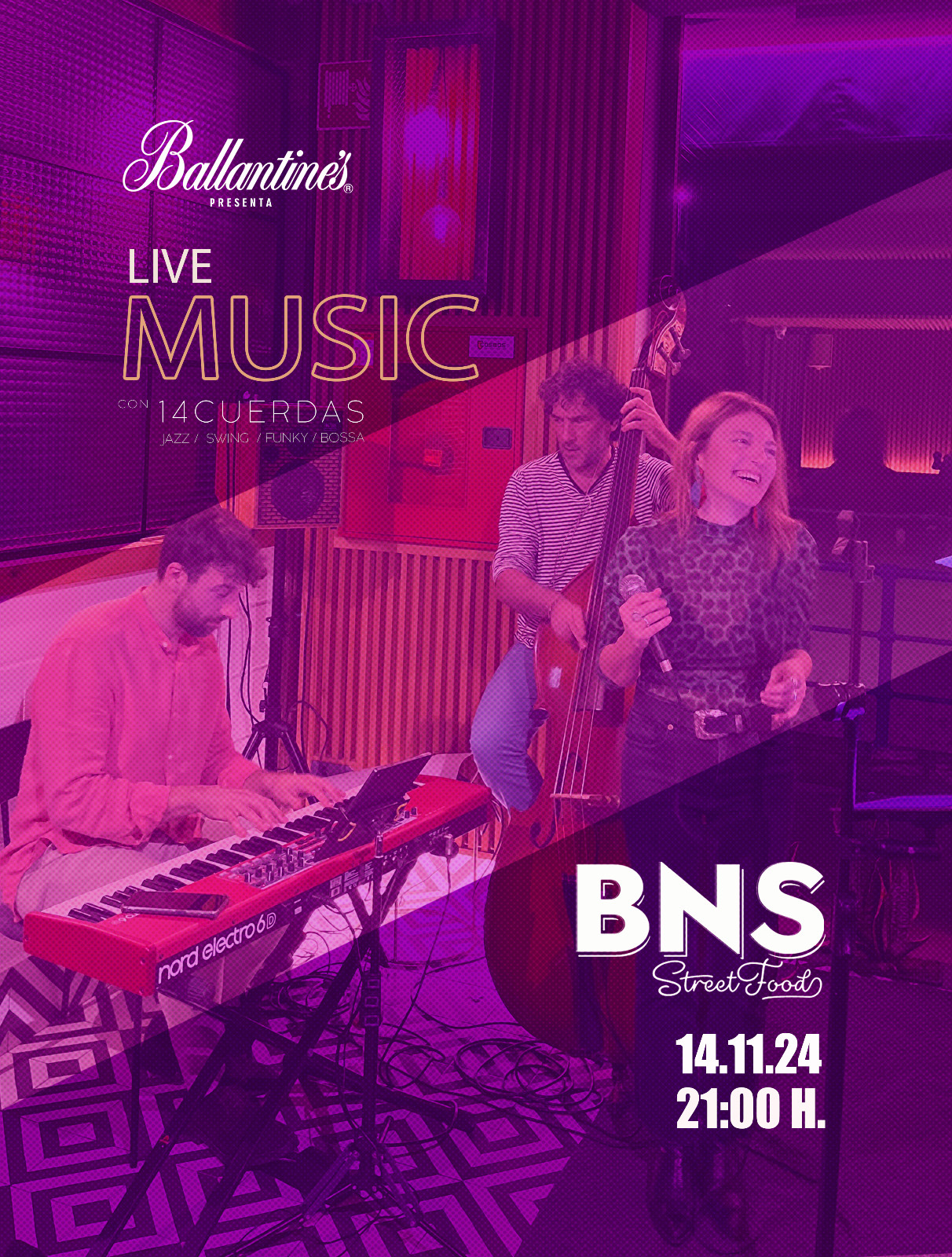 Disfruta de una velada única en BNS Streetfood de donde la música y el sabor se unen para crear momentos inolvidables. 14 Cuerdas estarán descargando un buen repertorio de jazz, swing, funk y, blues…