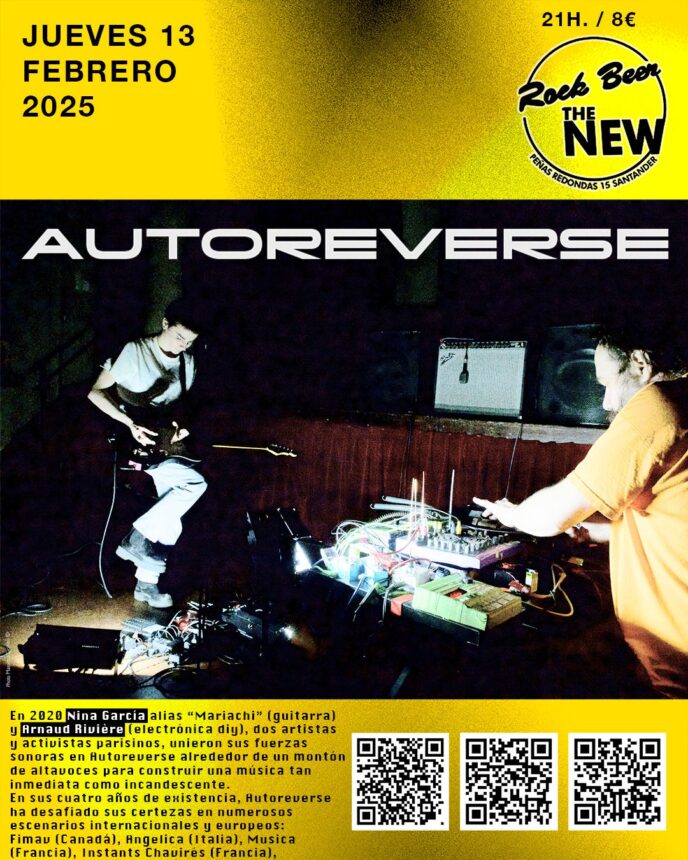 En 2020, Nina García, alias Mariachi (guitarra), y Arnaud Riviére (electrónica diy), dos artistas y activistas parisinos, unieron sus fuerzas sonoras en Autoreverse alrededor de un montón de altavoces para construir una música tan inmediata como incandescente.