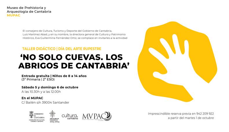 Coincidiendo con el Día Mundial del Arte Rupestre, el Museo de Prehistoria y Arqueología de Cantabria (MUPAC) organiza el taller didáctico “No solo cuevas. Los abrigos de Cantabria”, dirigido a niñas y niños de 8 a 14 años (3º primaria/2º ESO).