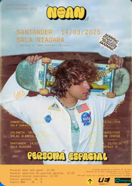 Noan es una de las promesas del pop rock en español de los últimos años. El joven cantante, multiinstrumentista y compositor nació en Zarautz (País Vasco) . Con su talento y su capacidad para producir éxitos como "Odio que te quiero", "Te echo de –", "Superpoder" y "Especial", se está consolidando como uno de los artistas más importantes de la Nueva Ola del Pop Rock español.