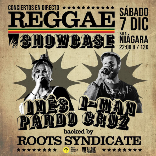 Noche dedicada al reggae en la Sala NIágara con la presencia de Inés Pardo e I-Man Cruz el sábado 7 de diciembre a las 22:00h.
