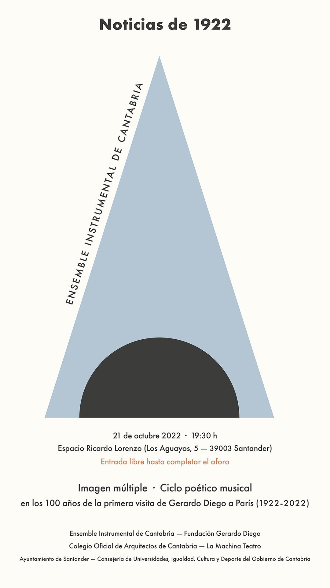 Este es el París que visita en 1922 Gerardo Diego, invitado por su querido y admirado Vicente Huidobro. Noticias de 1922, experiencia poético musical, propone respirar, por medio de músicas, textos, poemas, imágenes y documentos vinculados a aquel momento, una pequeña porción de ese apasionante, inspirador y también convulso ambiente, el de aquel portentoso nodo de la cultura mundial que es ya lejano pasado pero