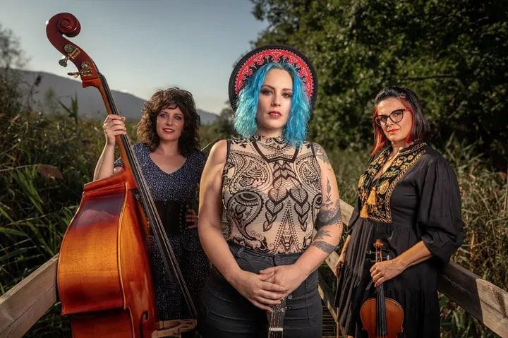 El interés por la música country, el swing, el bluegrass y el cabaret ha unido a las tres componentes de este trío de cuerda -ya consolidado- formado por Ainhoa Rincón (violín, mandolina y coros), Enara Sánchez (contrabajo) y Xandra de la Vega (guitarra, ukelele y voz principal). Una stringband con toques desenfadados pero de gran calidad.
