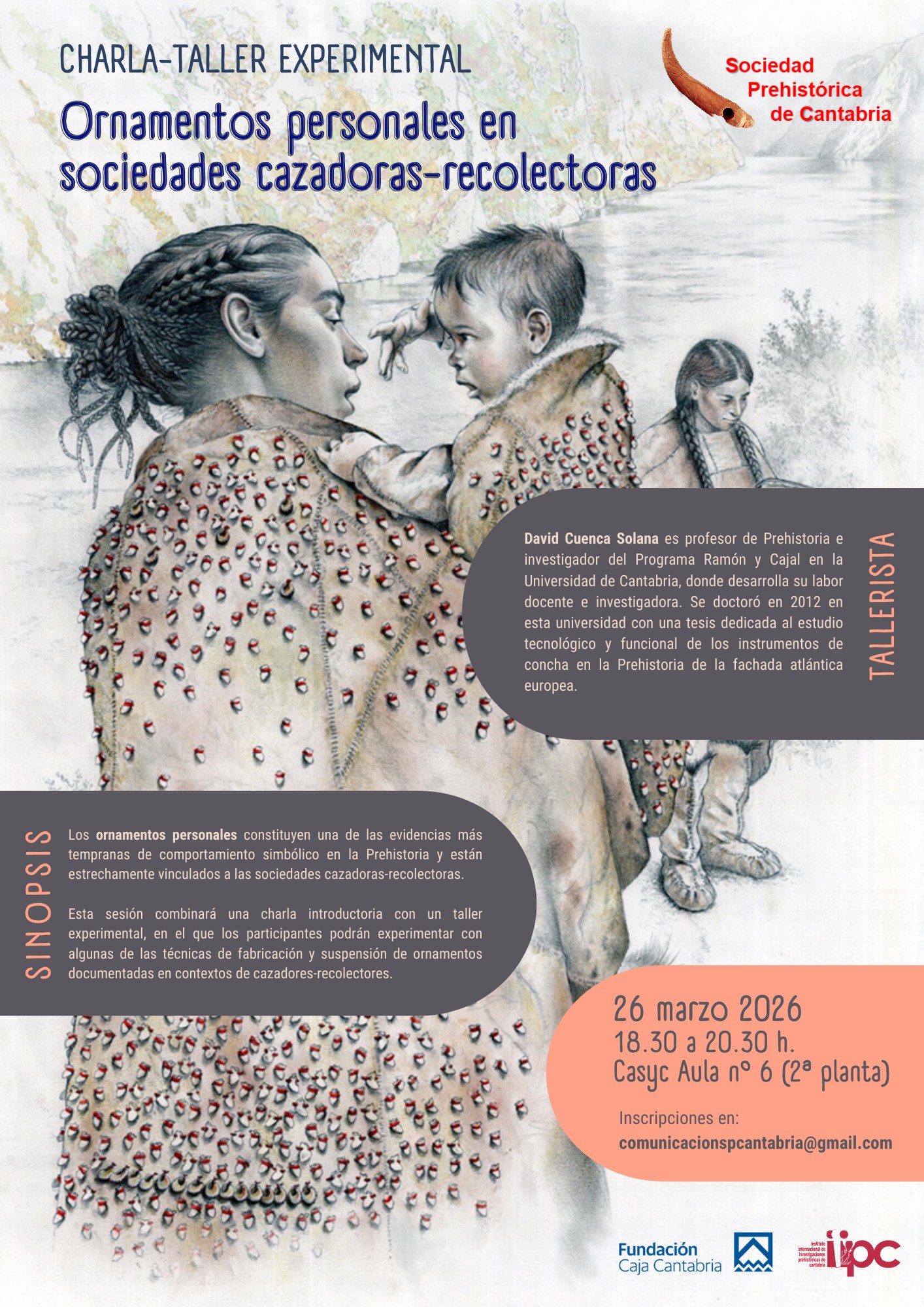 "Ornamentos personales en sociedades cazadoras-recolectoras" es el título del taller de arqueología experimental organizado por la Sociedad Prehistórica de Cantabria a cargo de David Cuenca Solana.