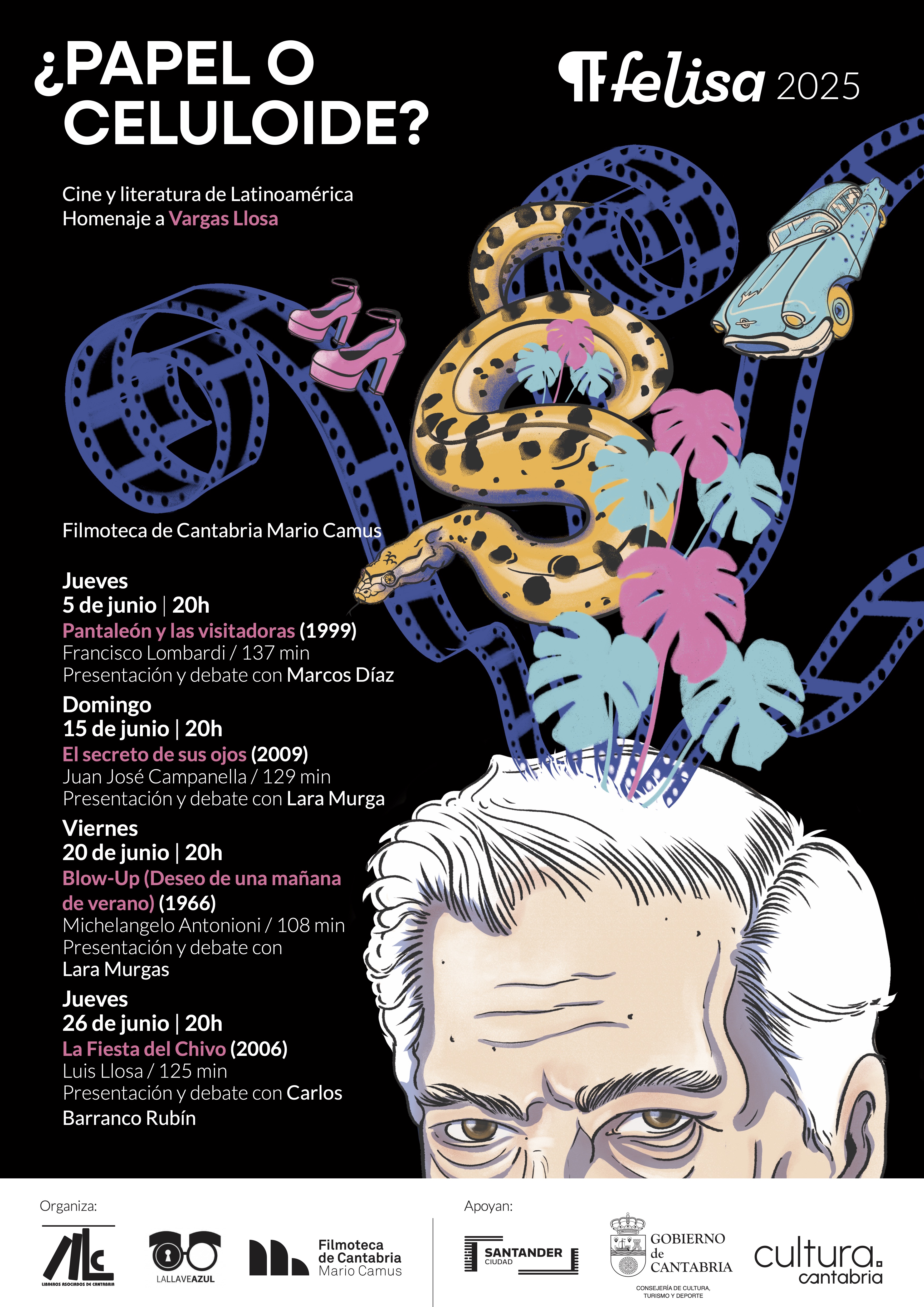 Felisa, la Feria del Libro de Santander y Cantabria, suele dar sus primeros pasos cada año en la sede santanderina de la Filmoteca Mario Camus. Así será también en 2025, con un ciclo, ‘¿Papel o celuloide?’, que este año se centra en el cine y literatura de Latinoamérica y rinde homenaje a Mario Vargas Llosa, el premio Nobel peruano que falleció el pasado 13 de abril.