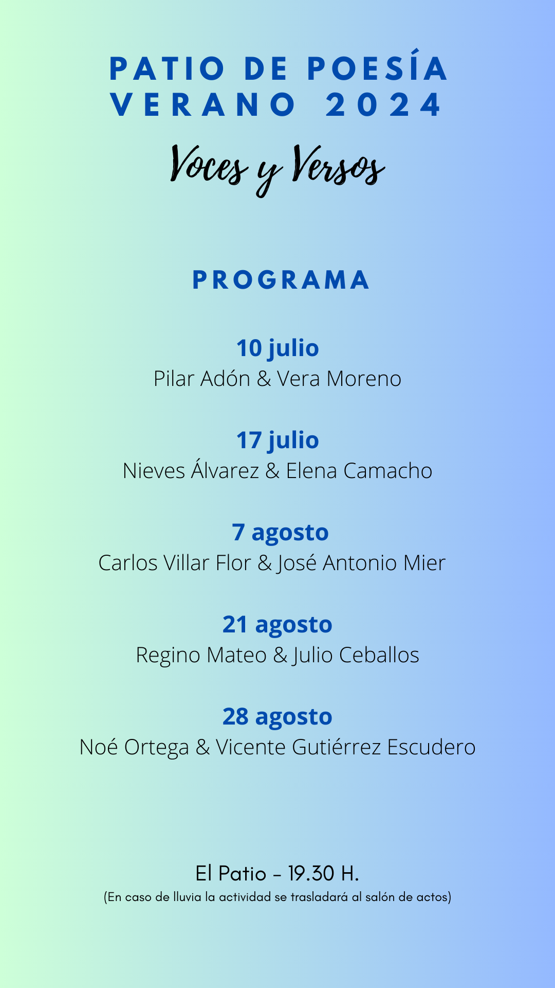 El proyecto "Patio de Poesía", pretende reunir una serie de lecturas poéticas de dos autores cántabros de diferentes generaciones que reciten sus poemas.