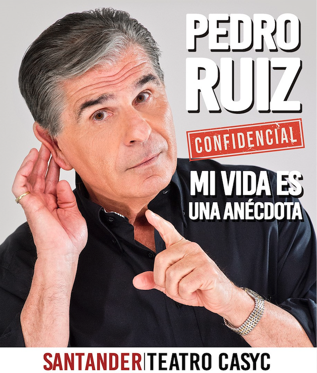 Pedro Ruiz presenta ‘Mi vida es una anécdota by confidencial’, lo que nadie se atreve a contar, una función única y exclusiva con todas las anécdotas relevantes, divertidas e insospechadas, entre canciones propias, parodias, poemas y bajo un ambiente íntimo y personal.
