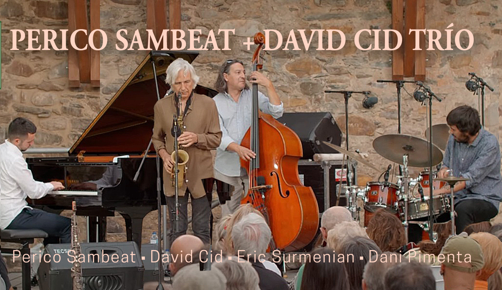 “Este proyecto, formado por Perico Sambeat, Eric Surmenian, Daniel Pimenta y David Cid, nace en 2021, cuando desde Radio Euskadi nos ofrecieron realizar un concierto en el Ondas de Jazz de Vitoria, mi ciudad natal. Perico y yo nos conocimos en las jam sessions de Valencia en 2019. Después de haber trabajado juntos en varias ocasiones, le propuse una colaboración con mi trío y empezamos a girar por toda España. A base de esfuerzo, investigar, estudiar y conocer más la música y la vida de Perico, como también todas sus influencias (Coltrane, Pepper, Sassetti, etc…) y teniendo en cuenta el criterio personal del resto de los integrantes del cuarteto hemos conseguido realizar un concierto creativo de temas originales de los cuatro. El resultado es una mezcla de swing, jazz modal, free, música programática, grooves y conceptos contemporáneos, una balada y un bolero con los que logramos un transcurso del espectáculo dinámico que cautiva a la gente, lleno de profundidad, energía y compromiso con la música”.