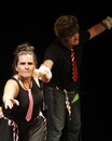 Alicia en el País de las Maravillas: dos personajes se arriesgan a entrar a través de la oscuridad en un espacio habitado por una torre de cajas habitadas por materias sonoras y olorosas con tactos imprevisibles. Abrir una caja es arriesgar.