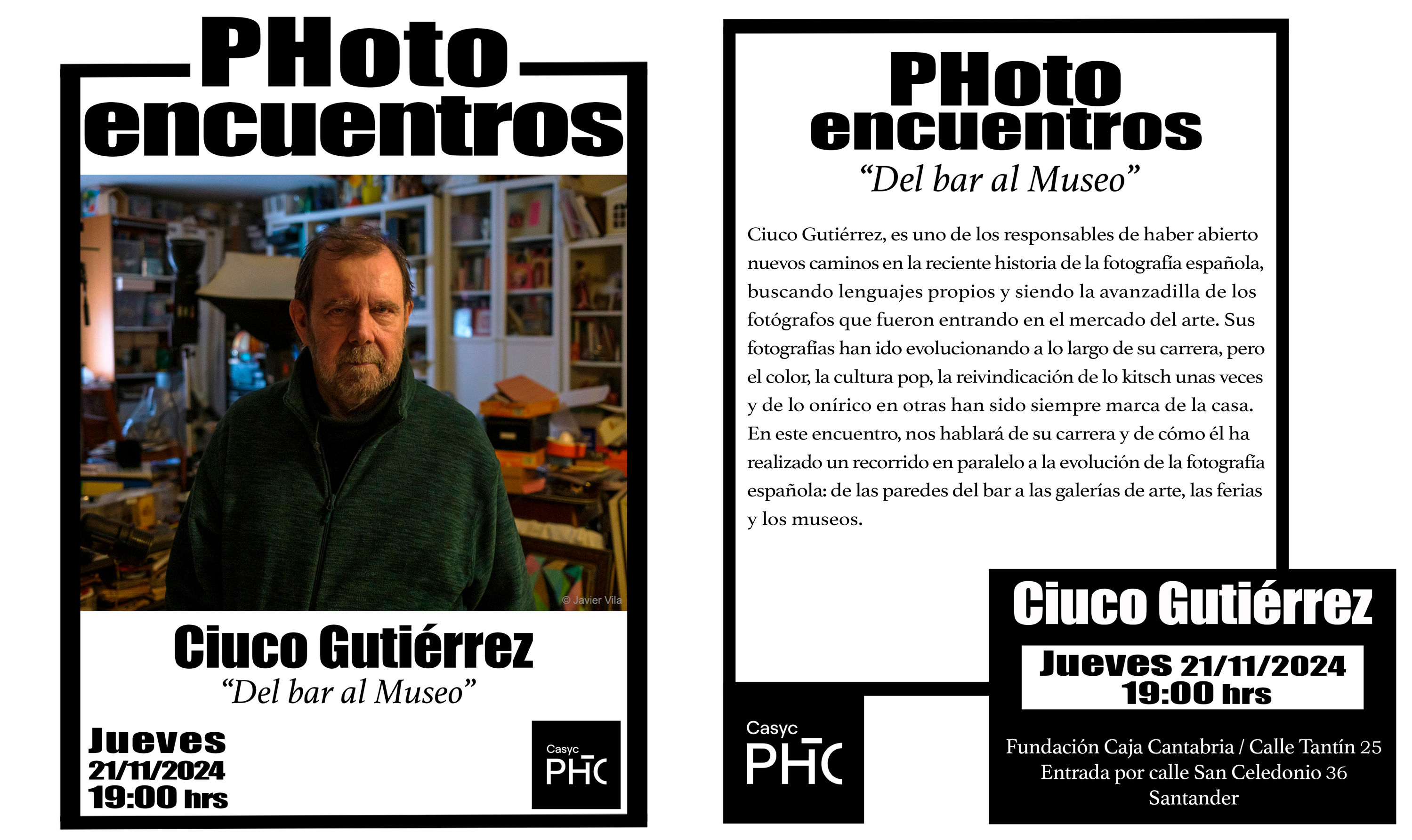 El acceso a este evento, que se desarrollará de 19:00 a 20:00 h en la sede de Casyc PHoto (San Celedonio, 36 – Santander), es libre hasta completar aforo.