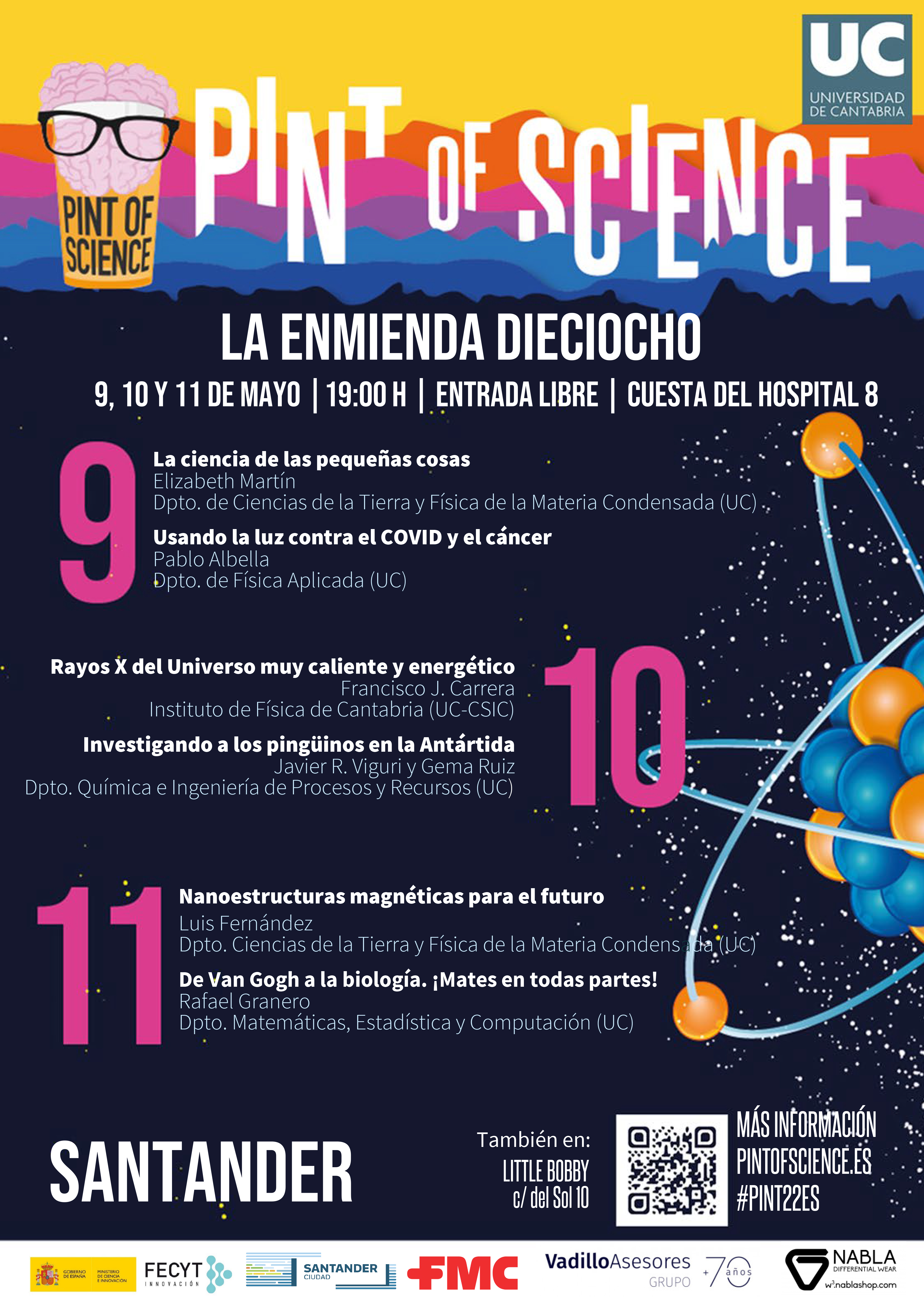 El programa completo de Cantabria se puede consultar en la web: https://web.unican.es/unidades/cultura-cientifica/actividades/pint-of-science .