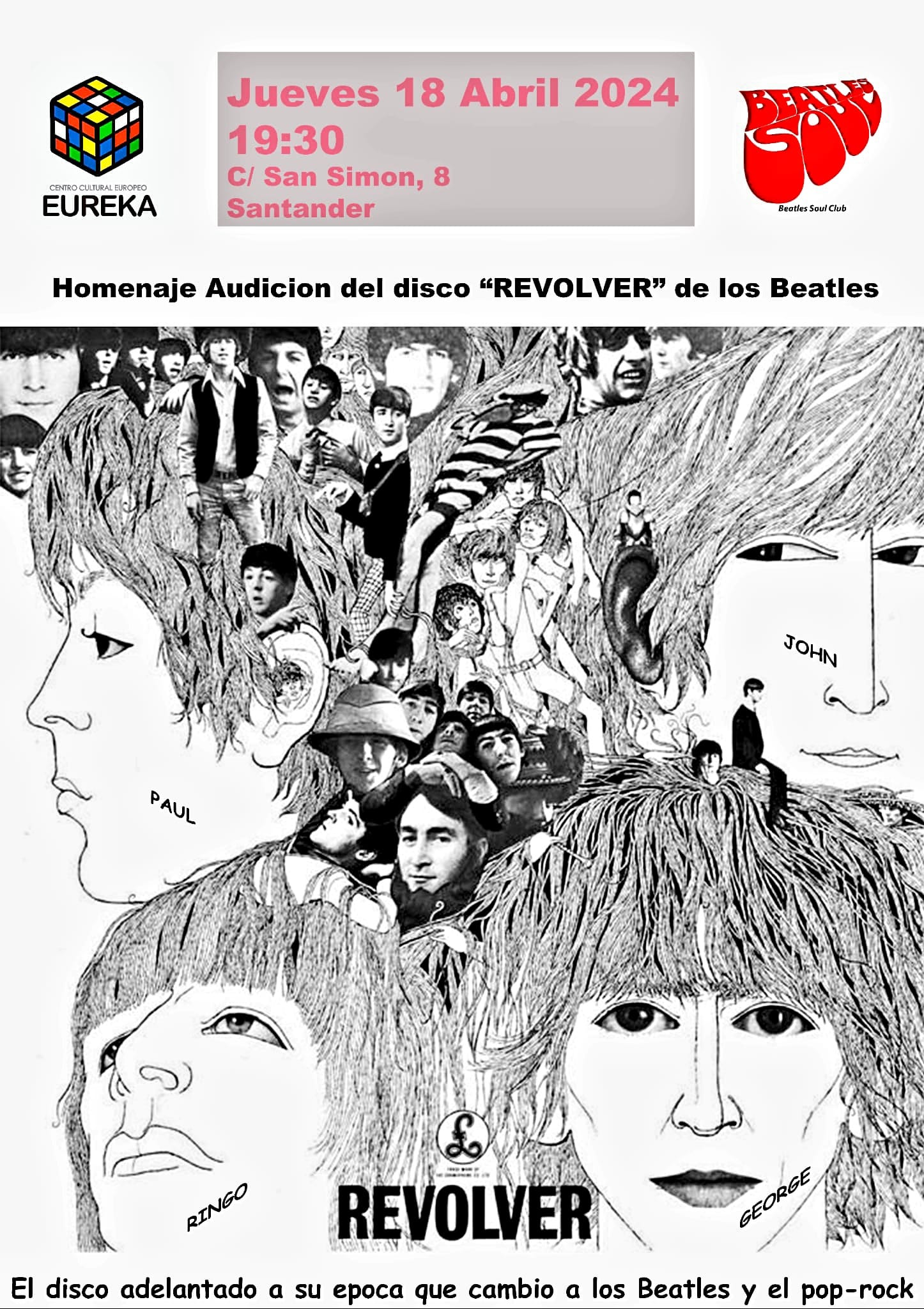 19:30h Homenaje y audición del disco “Revolver” con Beatles Soul Club & Vídeo “Tomorrow never knows”, Paco Arráez.