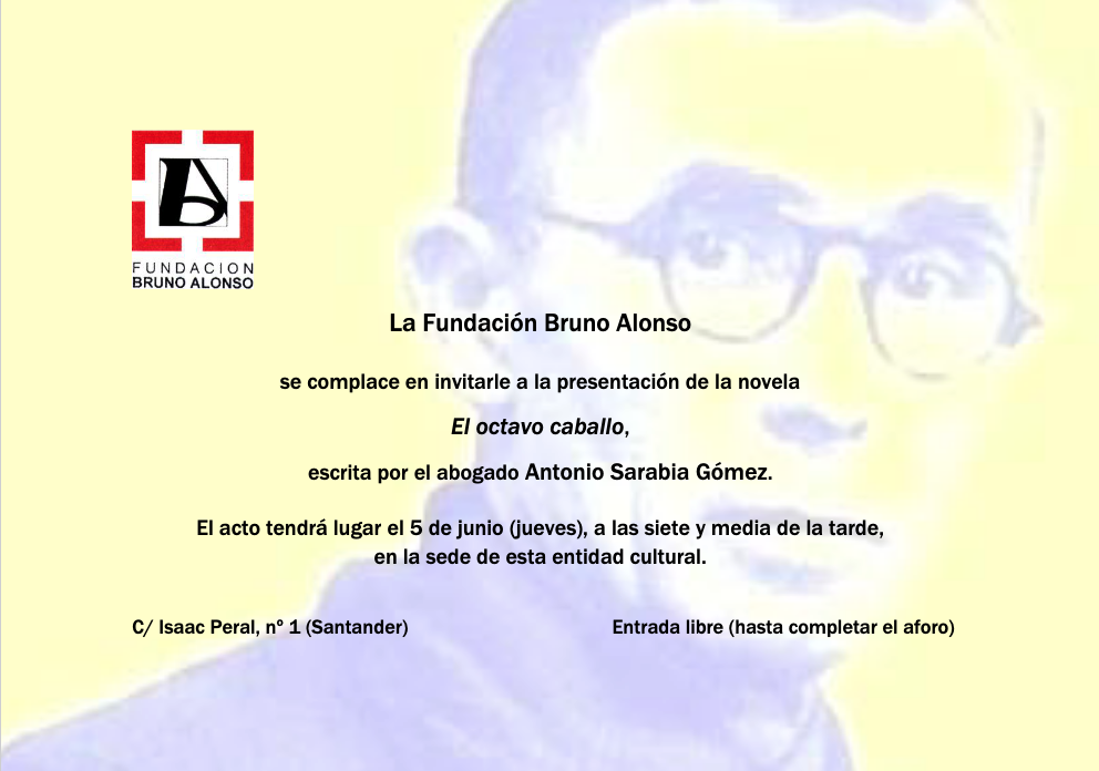La Fundación Bruno Alonso acoge la presentación de la novela “El octavo caballo”, escrita por el abogado Antonio Sarabia Gómez.