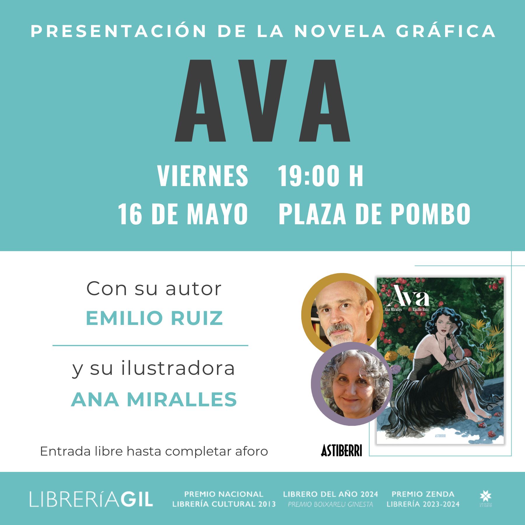 El viernes 16 de mayo, a las 19:00 h. tendrá lugar la presentación de “Ava”, de Emilio Ruiz y Ana Miralles. (Editorial Astiberri).
