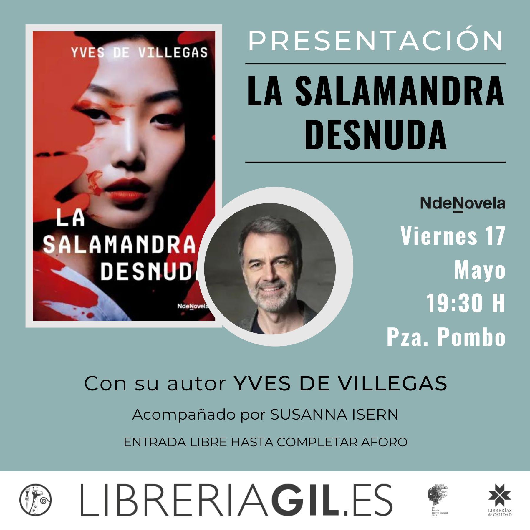 El viernes 17 de mayo, a las 19:30 h. tendrá lugar en la Librería Gil de la Plaza de Pombo la presentación de “La salamandra desnuda”, de Yves de Villegas. El autor estará acompañado por Fernando Abascal. (Editorial Anagrama).