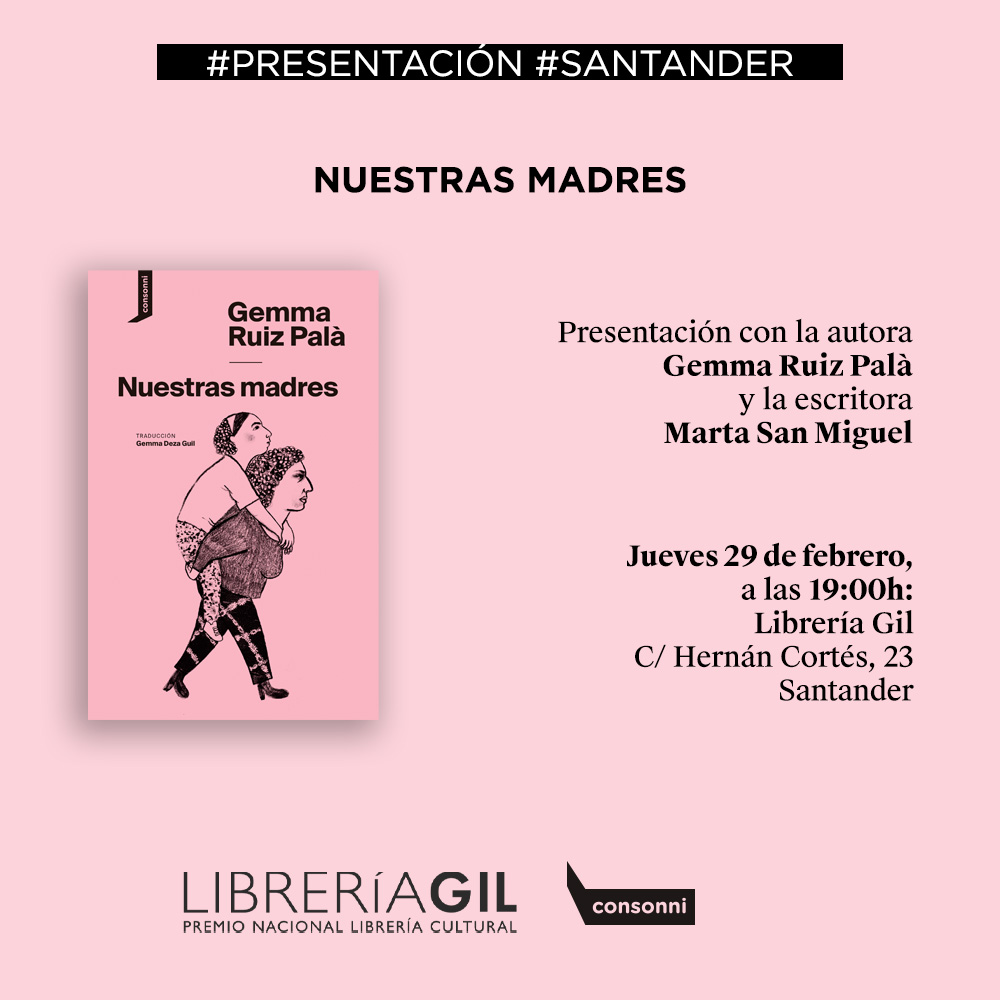 El jueves 29 de febrero, a las 19:00 h. tendrá lugar en Librería Gil la presentación de “Nuestras madres”, de Gemma Ruiz Palà (Editorial Consonni). La autora estará acompañada por Marta San Miguel.