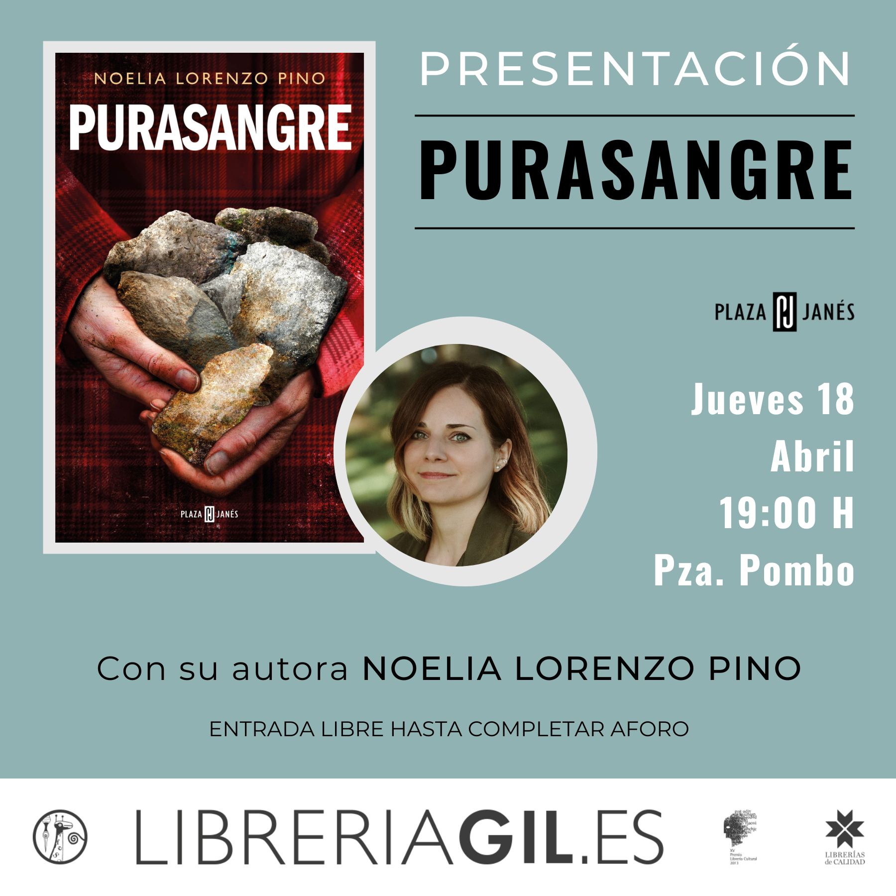 El jueves, 18 de abril, a las 19:00 h. tendrá lugar en librería Gil la presentación de “Purasangre” (Serie Lud y Maddi 2), de Noelia Lorenzo Pino (Editorial Plaza & Janes).