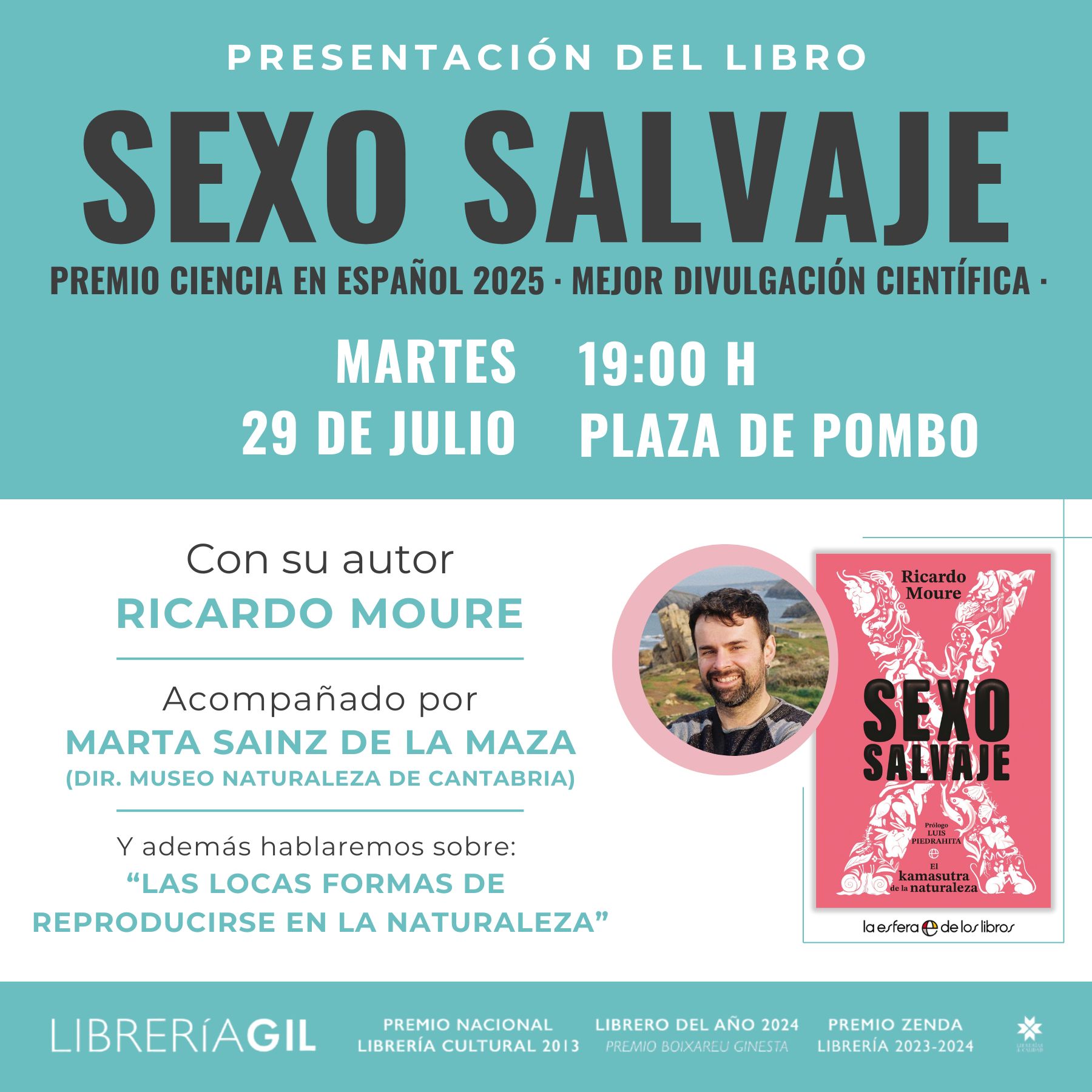 Librería Gil acoge el martes 29 de julio, a las 19:00 h. la presentación de “Sexo salvaje (el Kamasutra de la naturaleza)”, que ha recibido el premio de Ciencia en Español 2025 a la Mejor Divulgación Científica.