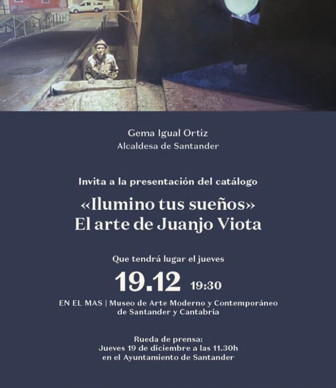 El Museo de Santander, MAS, acogerá el jueves 19 de diciembre la presentación del libro-catálogo de la obra del pintor Juanjo Viota. El acto contará con la presencia del Ayuntamiento de Santander, la Consejería de Cultura, además de los familiares del artista y los artífices del proyecto: los comisarios del homenaje Lidia Gil, Ricardo González, Emma Meruelo, Quique Ortiz, Wendy Navarro, así como la diseñadora del catálogo Mariajo Arce y la creadora de la web Isabel de la Sierra.