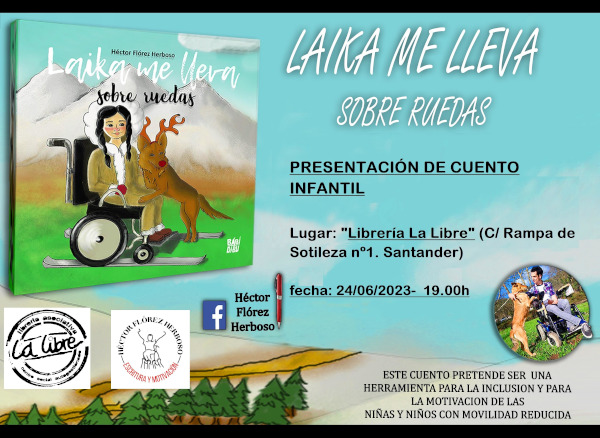 El sábado 24 de junio a partir de las 19:00 h, la librería La Libre contará con la presencia de Héctor Flórez quien presentará su cuento "Laika me lleva sobre ruedas".
