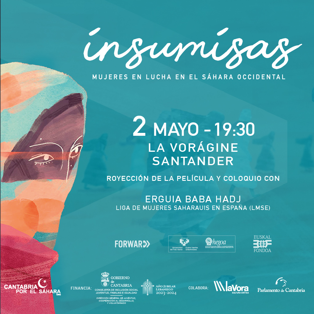 La presentación del trabajo documental “Insumisas. Mujeres en lucha en el Sáhara Occidental” de Forward y el Instituto Hegoa, tendrá lugar el jueves, 2 de mayo, a partir de las 19.30 h. en La Vorágine Cultura Crítica, situada en la Calle Cisneros y contará con la presencia de Erguia Baba Hadj, de la Asociación de Mujeres Saharauis en el Estado Español, que será la encargada de complementar la proyección dando voz a la situación que atraviesan las mujeres bajo ocupación.