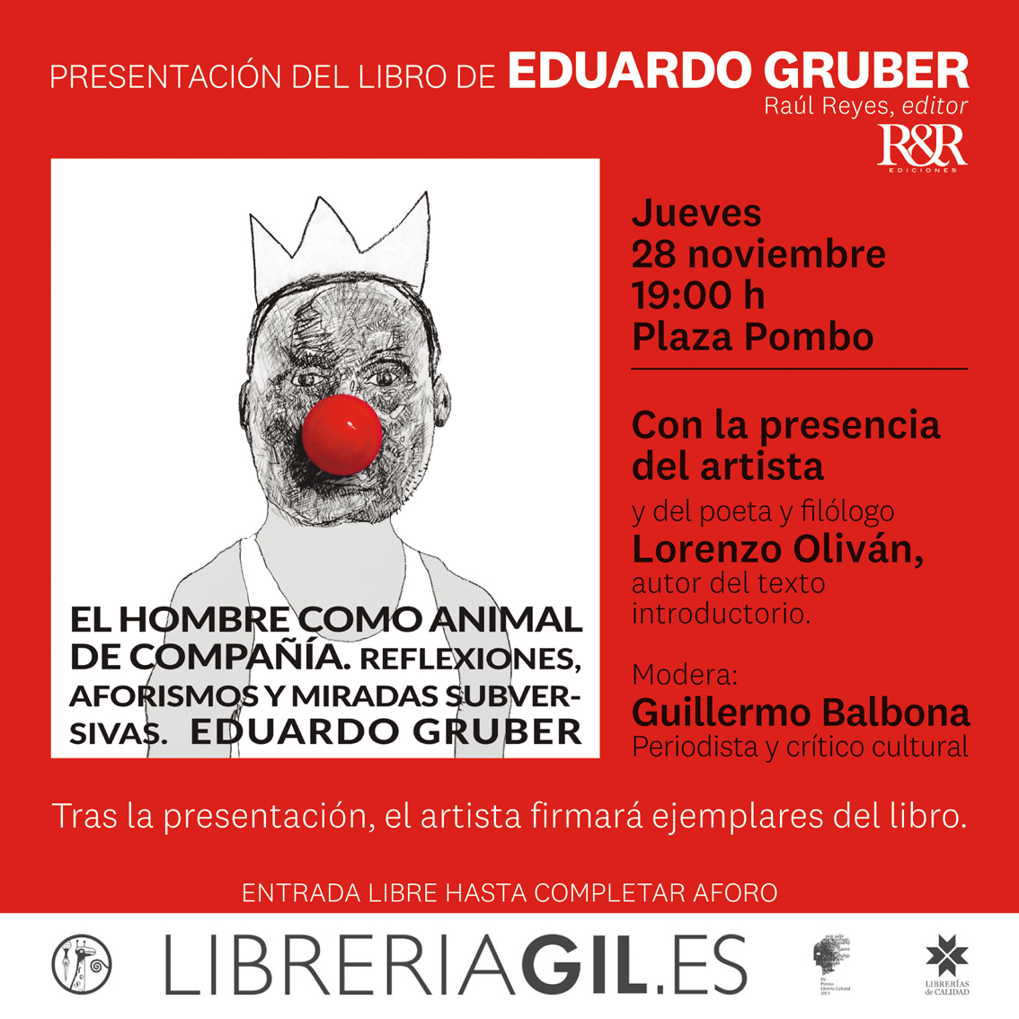 La cita tendrá lugar en Librería Gil (Plaza Pombo) el jueves, 28 de noviembre, a las 19:00 h., con la presencia de Eduardo Gruber y del poeta y filólogo Lorenzo Oliván, autor del prólogo.