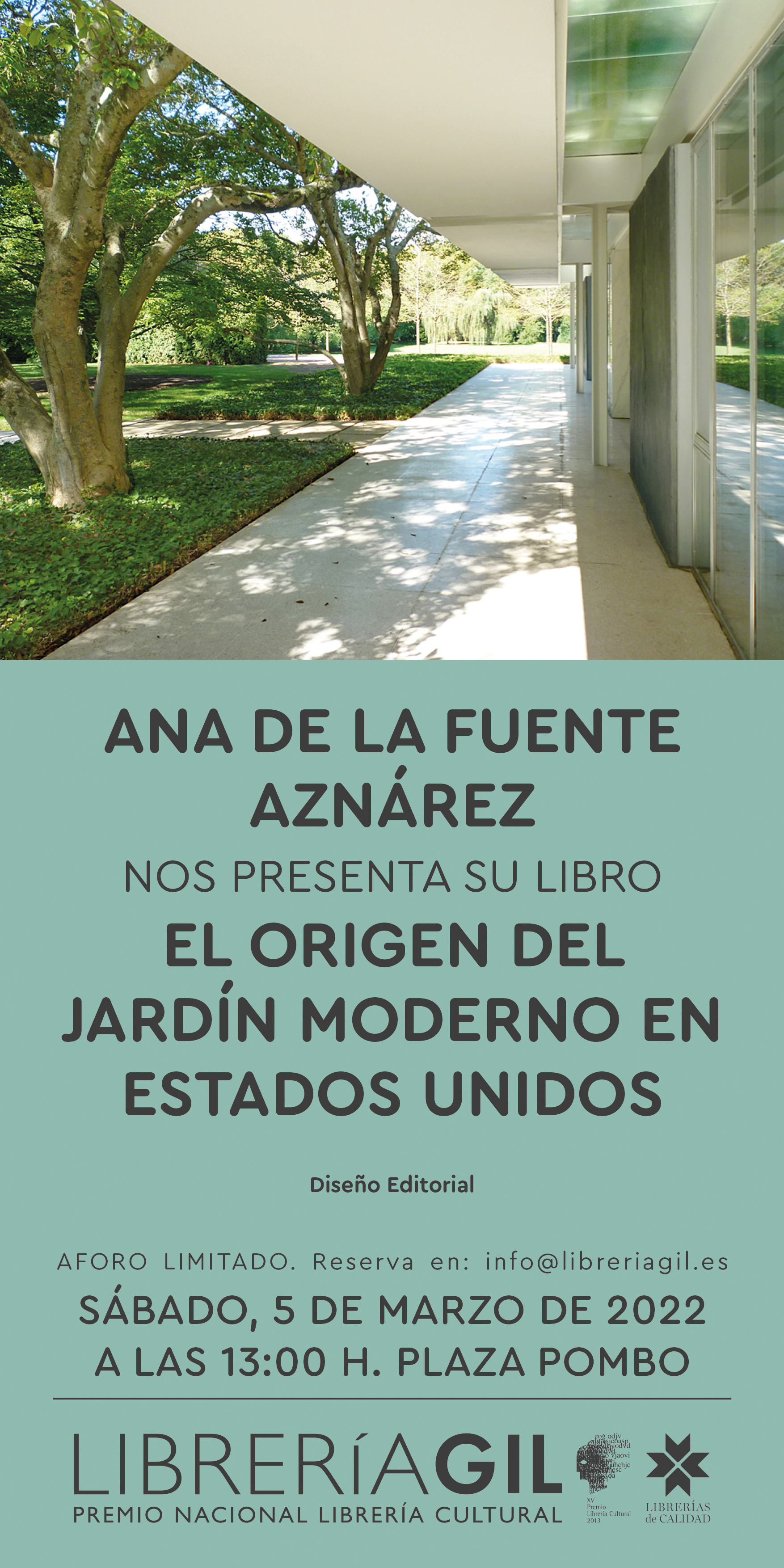 Ana de la Fuente Aznárez presenta su libro “El origen del jardín moderno en Estados Unidos”. Será en Librería Gil el sábado 5 de marzo a las 13:00 horas. Reservas en info@libreriagil.es .