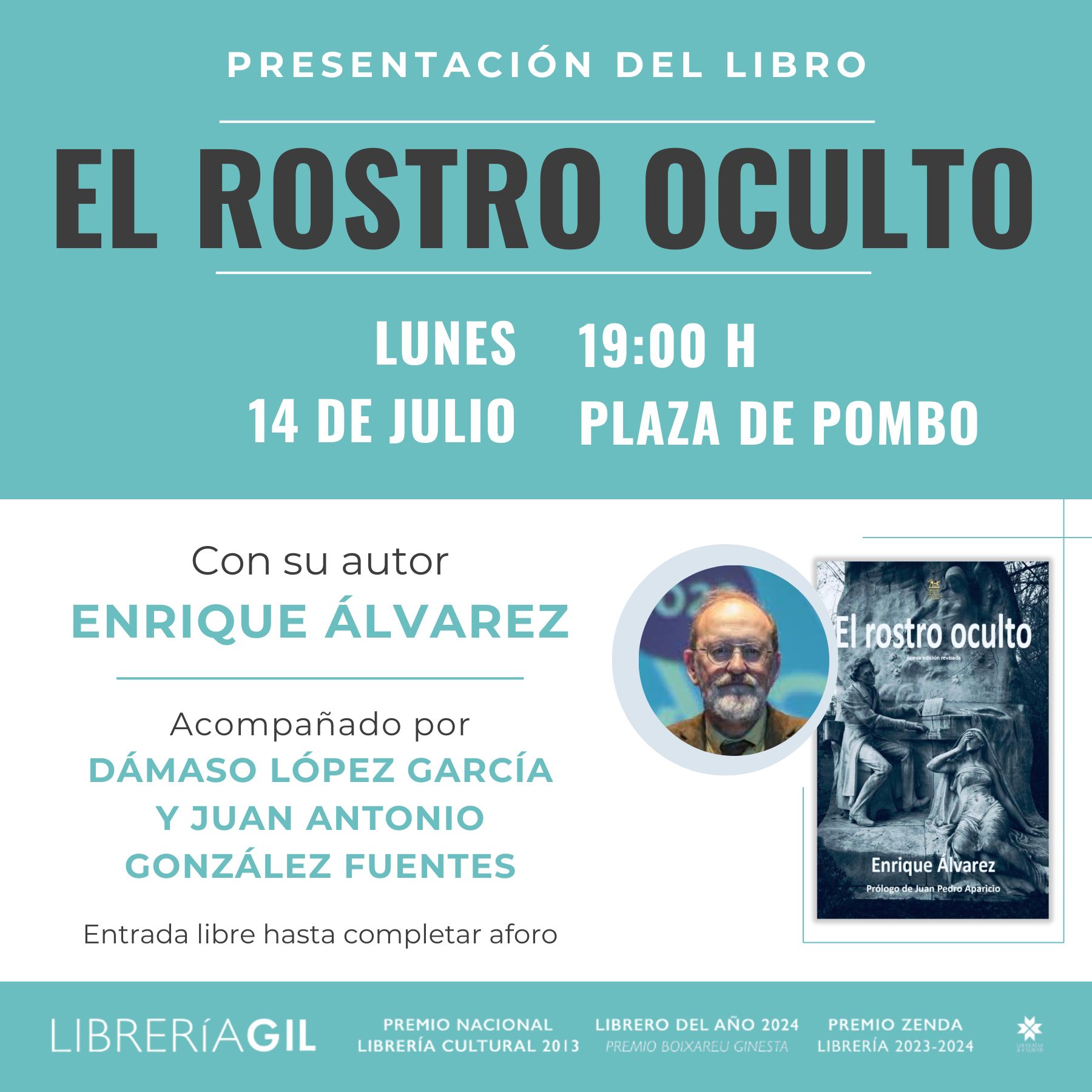 El lunes 14 de julio a las 19:00h, Enrique Álvarez presenta su libro “El rostro oculto” en la Librería Gil de la Plaza de Pombo. El autor estará acompañado por Dámaso López García, catedrático de Filología de la Universidad Complutense, y Juan Antonio González Fuentes, Premio de las Letras Ciudad de Santander.