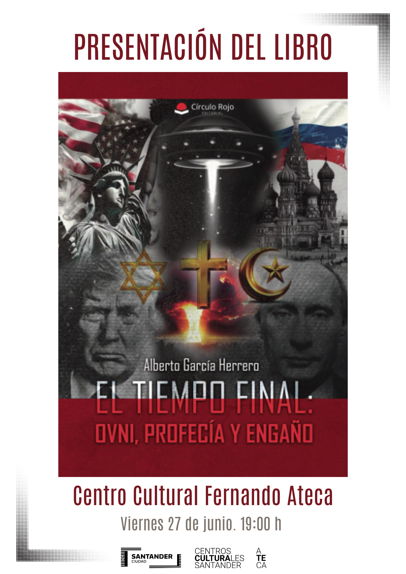 El viernes 27 de junio, a las 19:00 h, el centro cultural Fernando Ateca acoge la presentación del libro "El tiempo final: Ovni, profecía y engaño", de Alberto García Herrero.